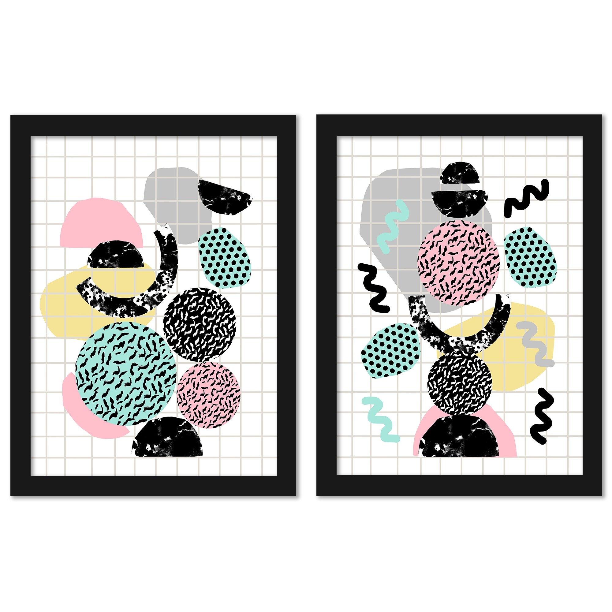 Designart "Abstract Retro Geometrics II" Geometric Framed Art Set of 2 Pieces