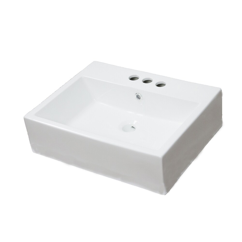 21-in. W Wall Mount White Vessel for 3H4-in. Center Drilling