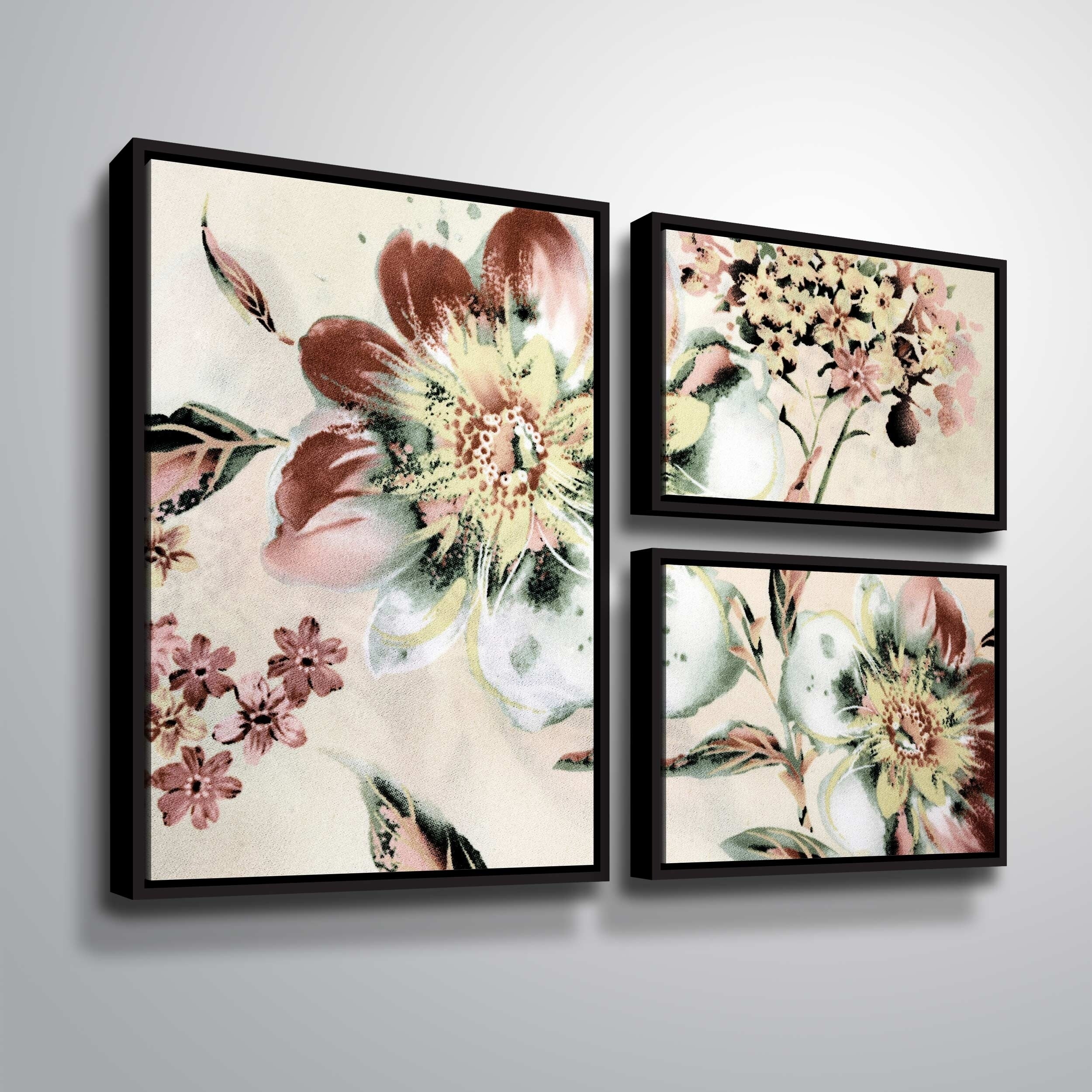 ArtWall 'Summer Flower' 3 Piece Floater Framed Canvas Flag Set