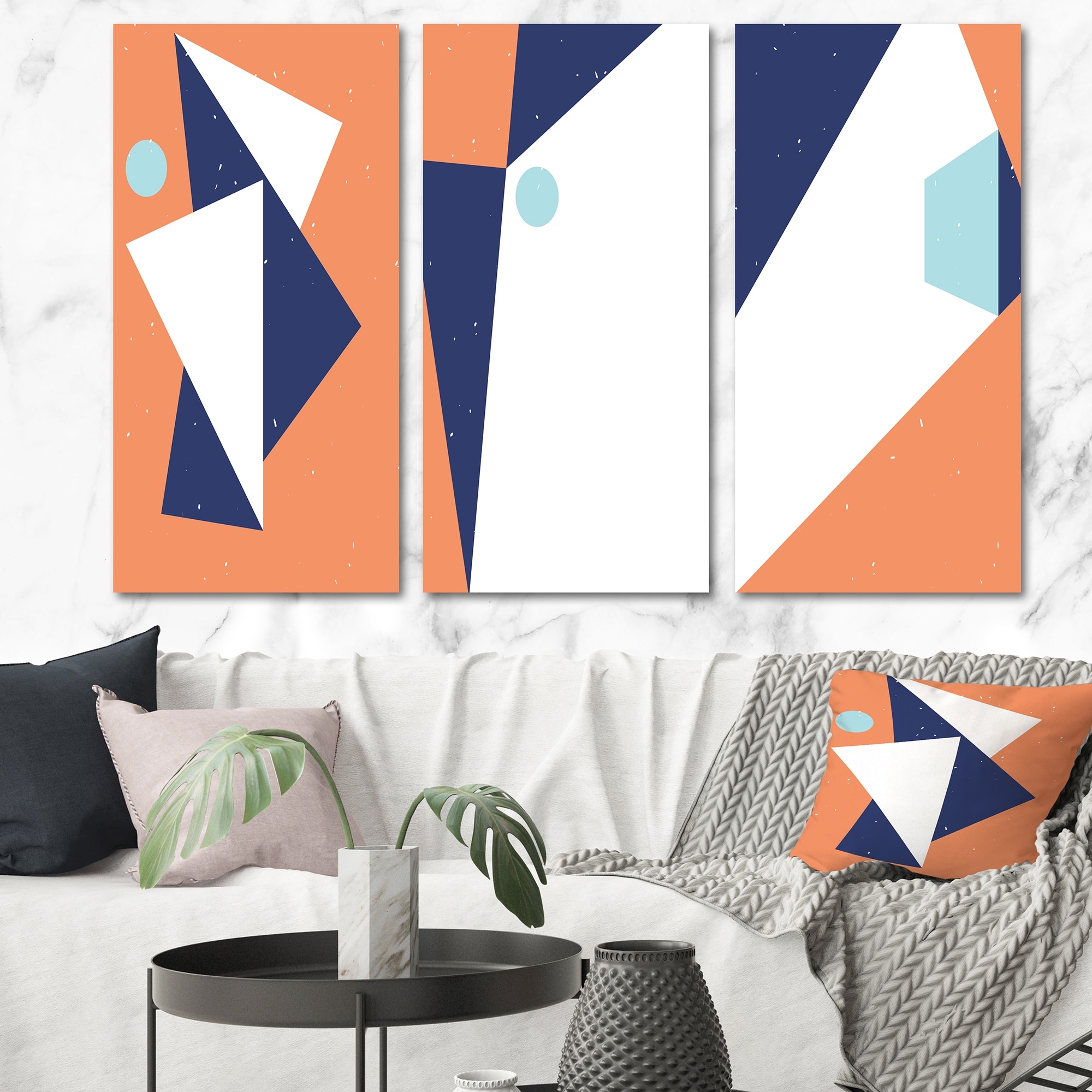 Designart 'Retro Abstract Minimal Colorful Geometrics III' Mid-Century Modern Art Set of 3 Pieces