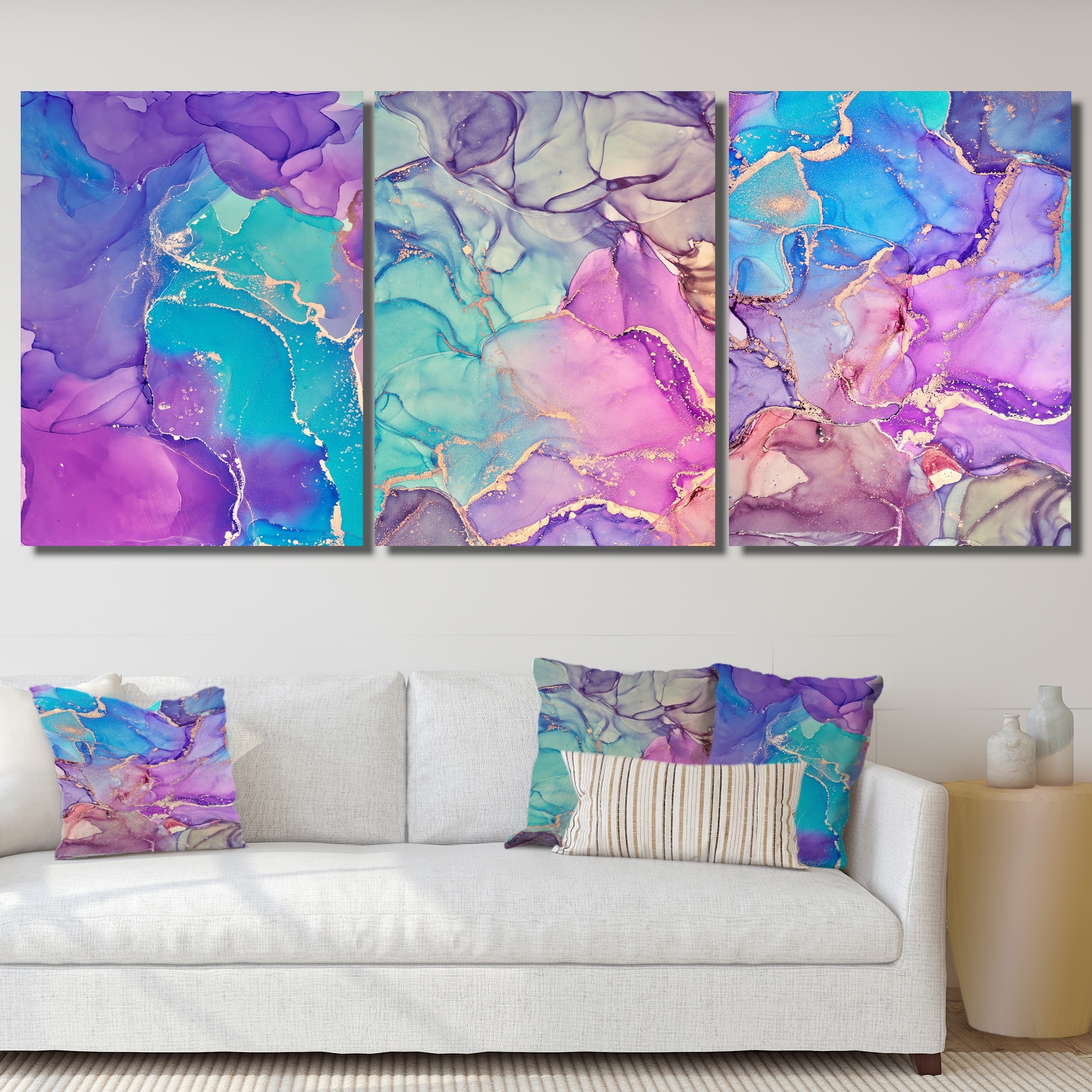 Designart 'Purple And Blue Liquid Art IV' Modern Art Set of 3 Pieces