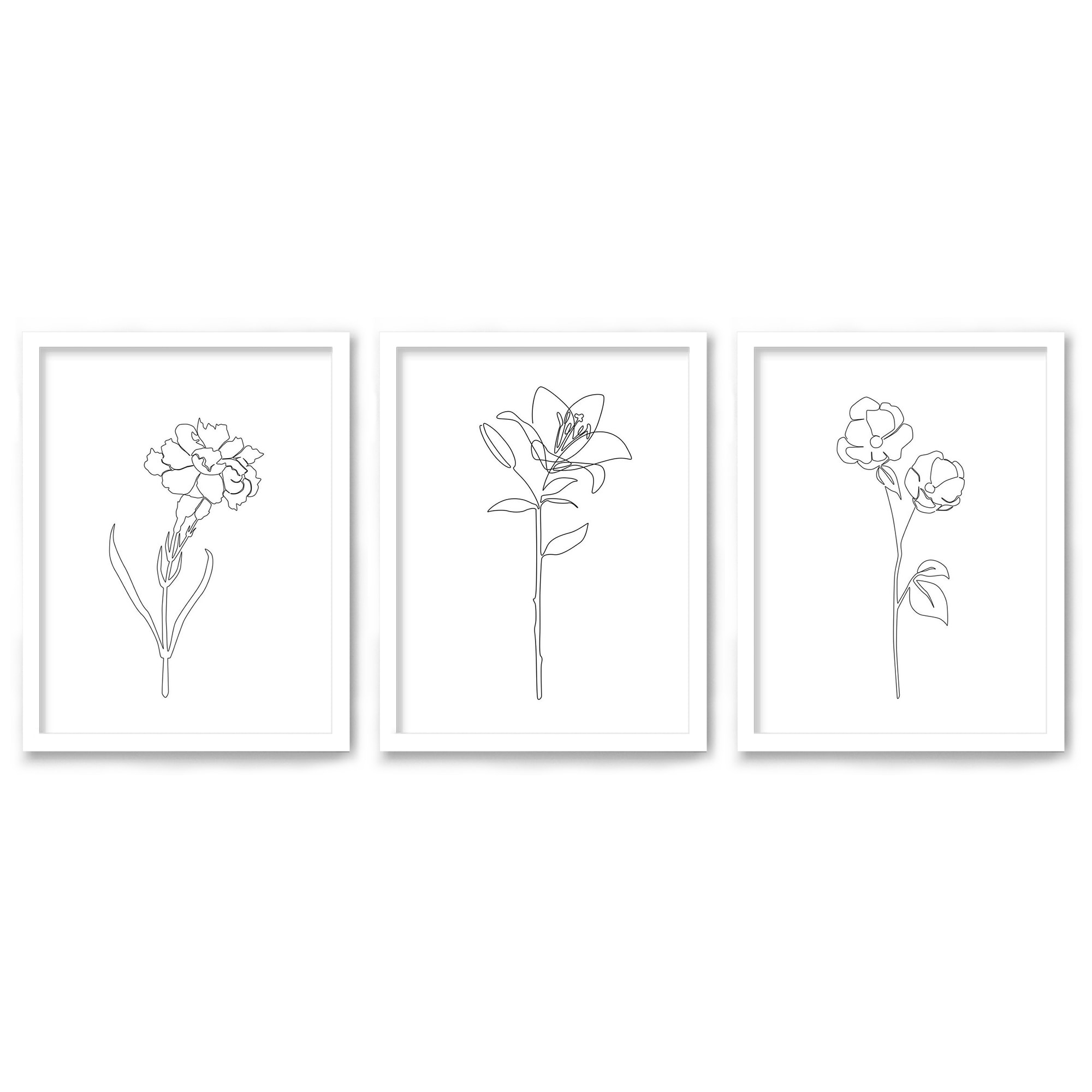 Floral Sketches By Explicit Design 3 Piece Framed Print Wall Art Set