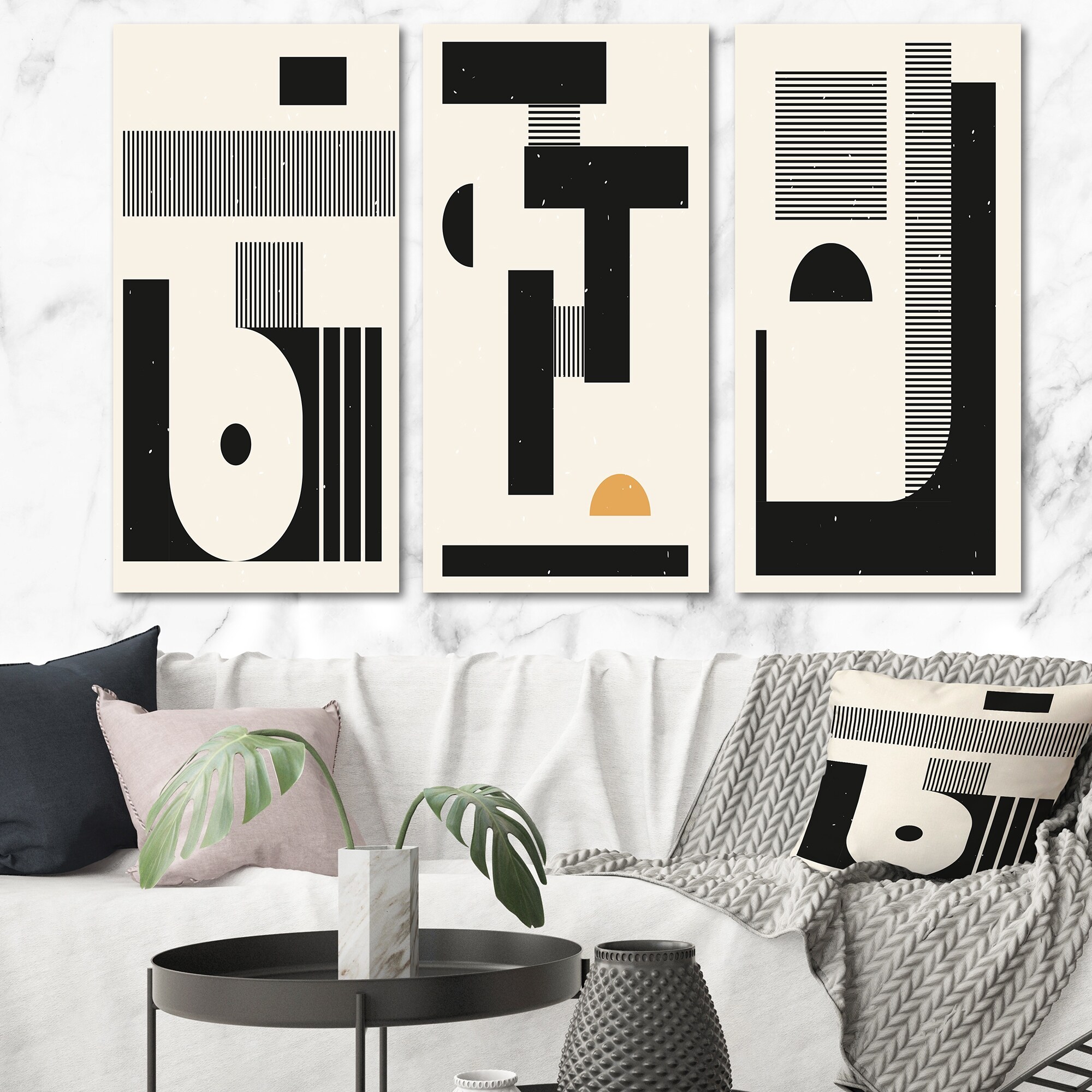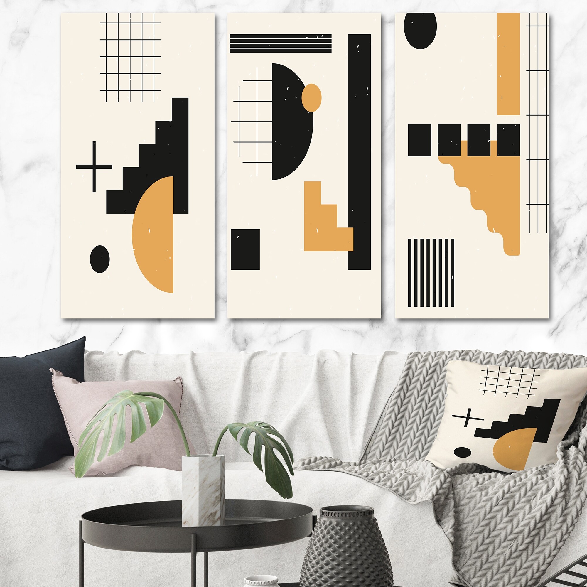 Designart 'Monochrome Vintage Minimalistic Geometrics II' Mid-Century Modern Art Set of 3 Pieces