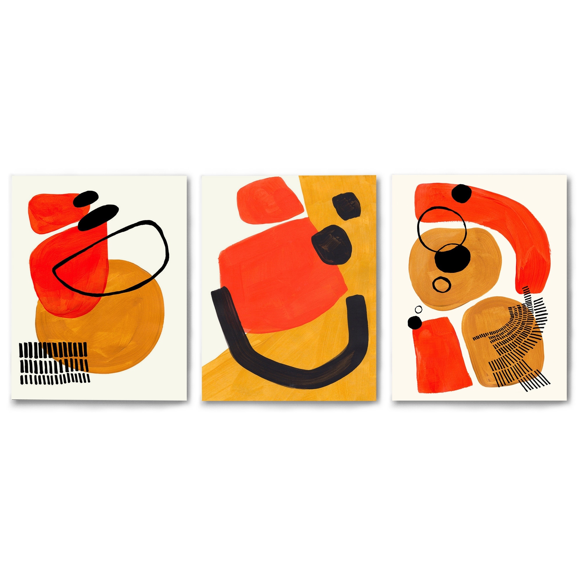 Canvas Triptych Mid Century Abstract by Ejaaz Haniff - 3 Piece Art Set