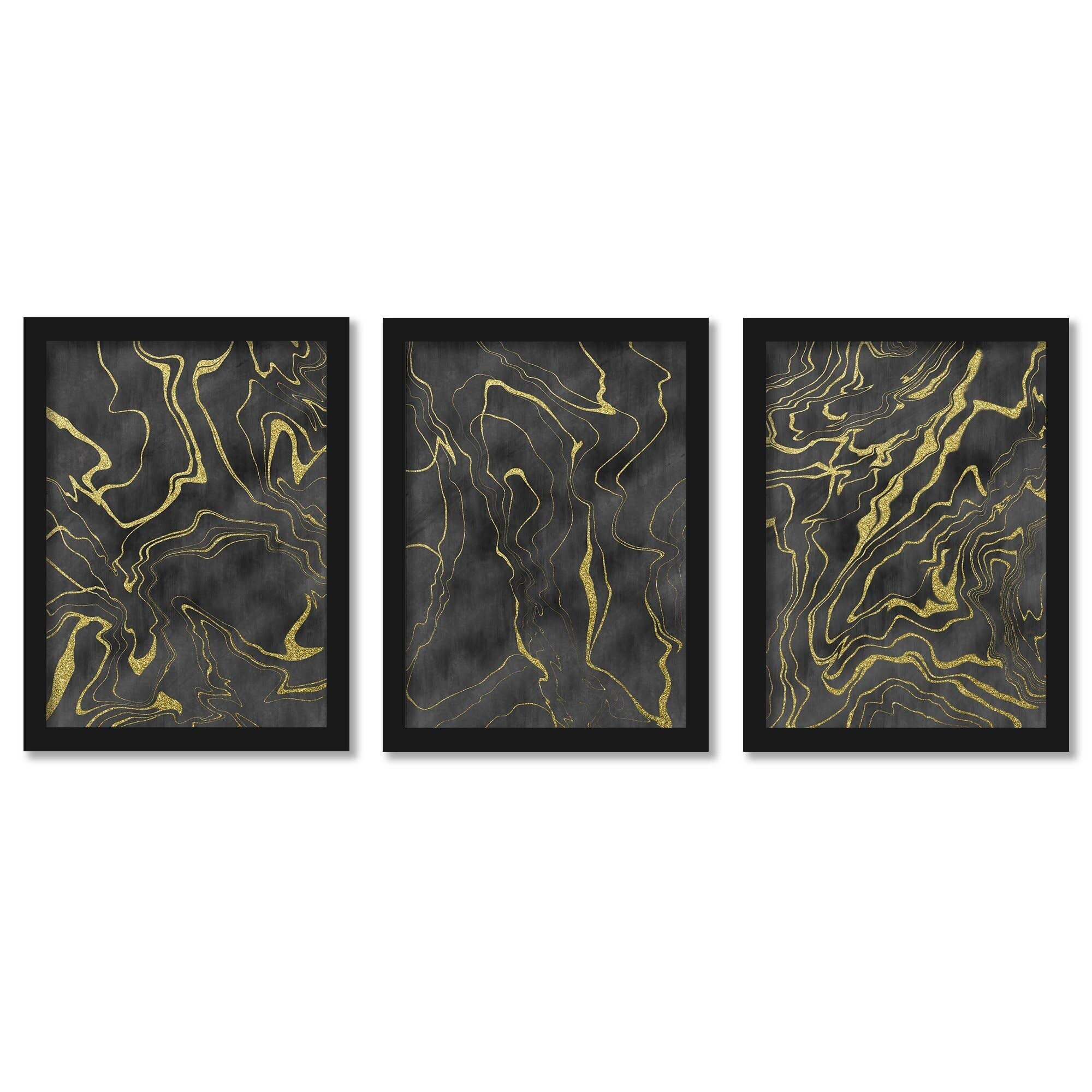 Gold Marble Flows Melanie Viola Abstract 3 - 3 Piece Gallery Print Art Set