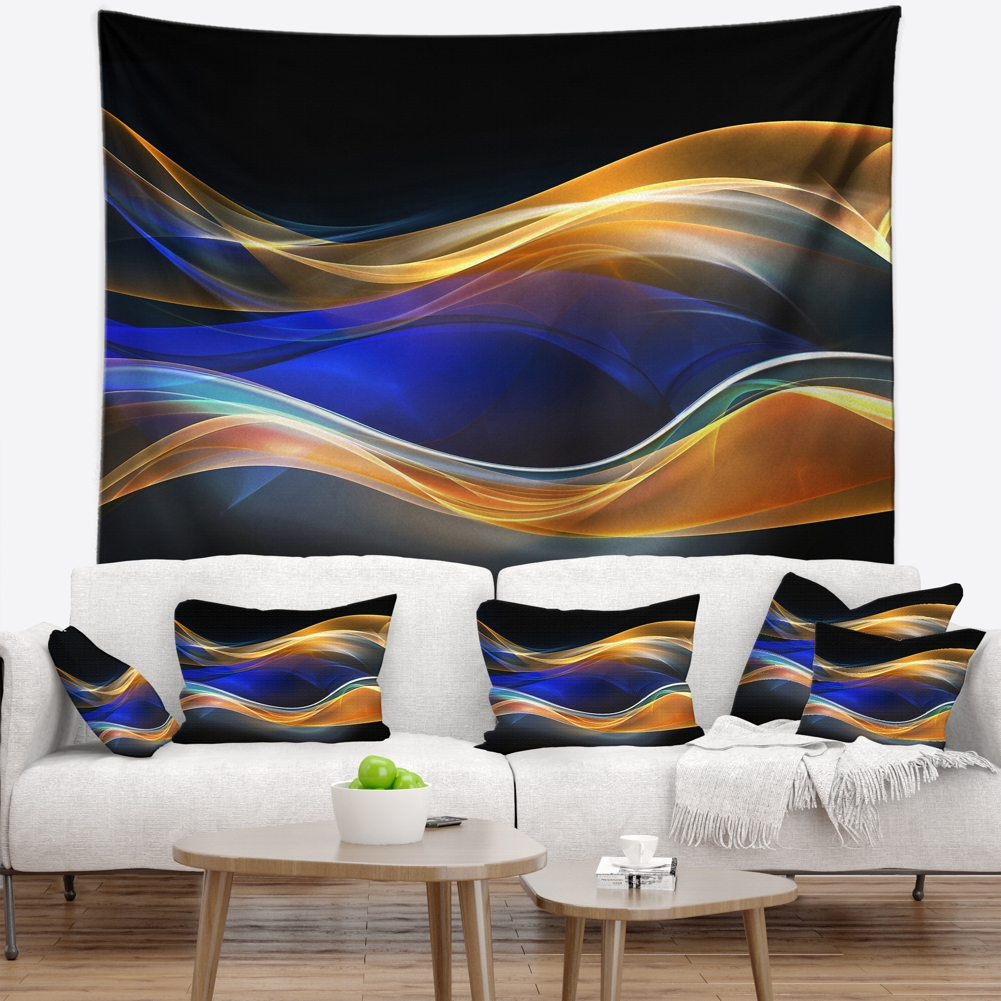 Designart '3D Gold Blue Wave Design' Abstract Wall Tapestry