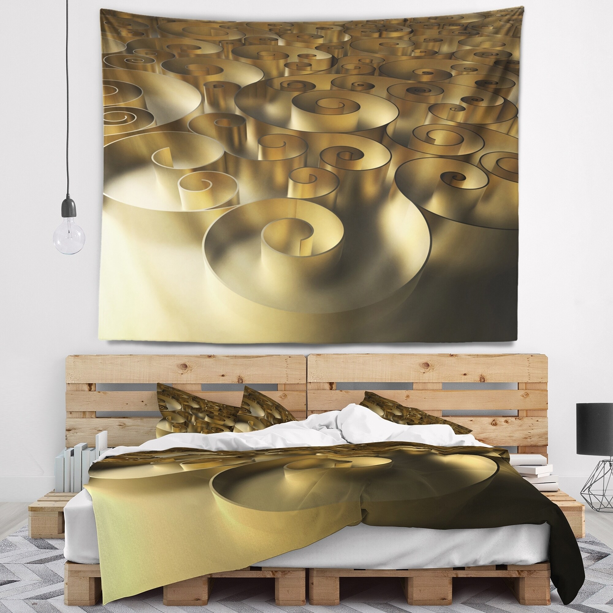 Designart 'Golden Curly Abstract 3D Design' Abstract Wall Tapestry