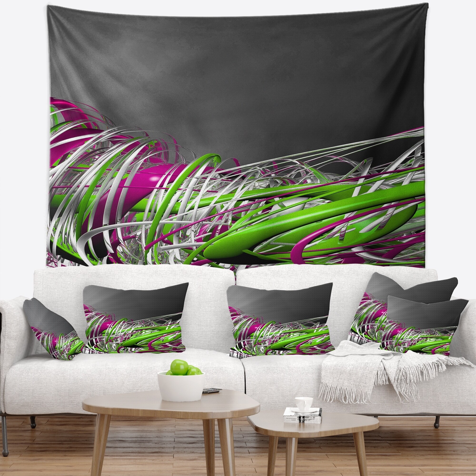 Designart 'Fractal 3D Green Purple Stripes' Contemporary Wall Tapestry