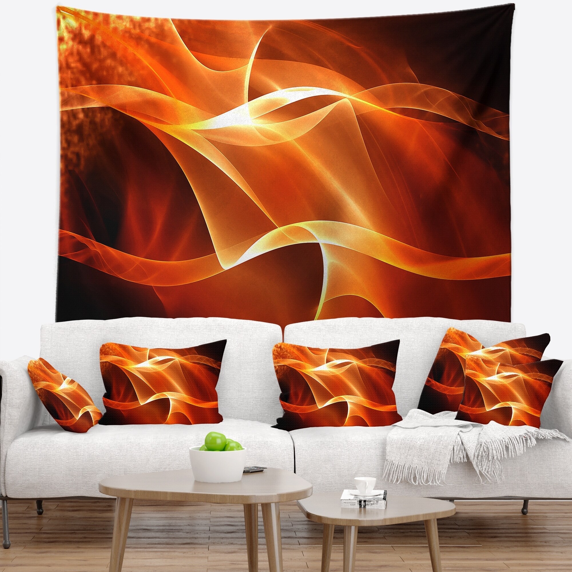 Designart 'Orange 3d Abstract Fractal Waves' Contemporary Abstract Wall Tapestry
