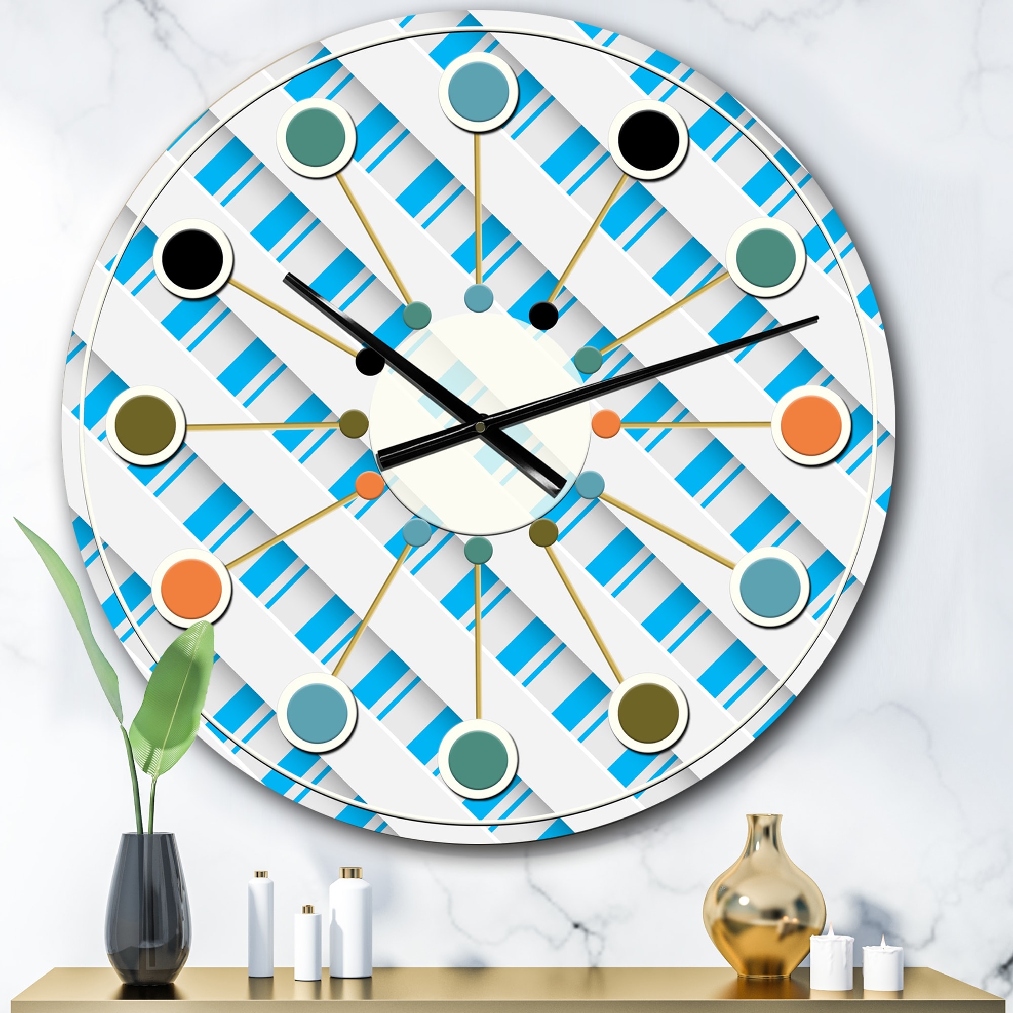 Designart '3D White and Blue Pattern VI' Mid-Century wall clock