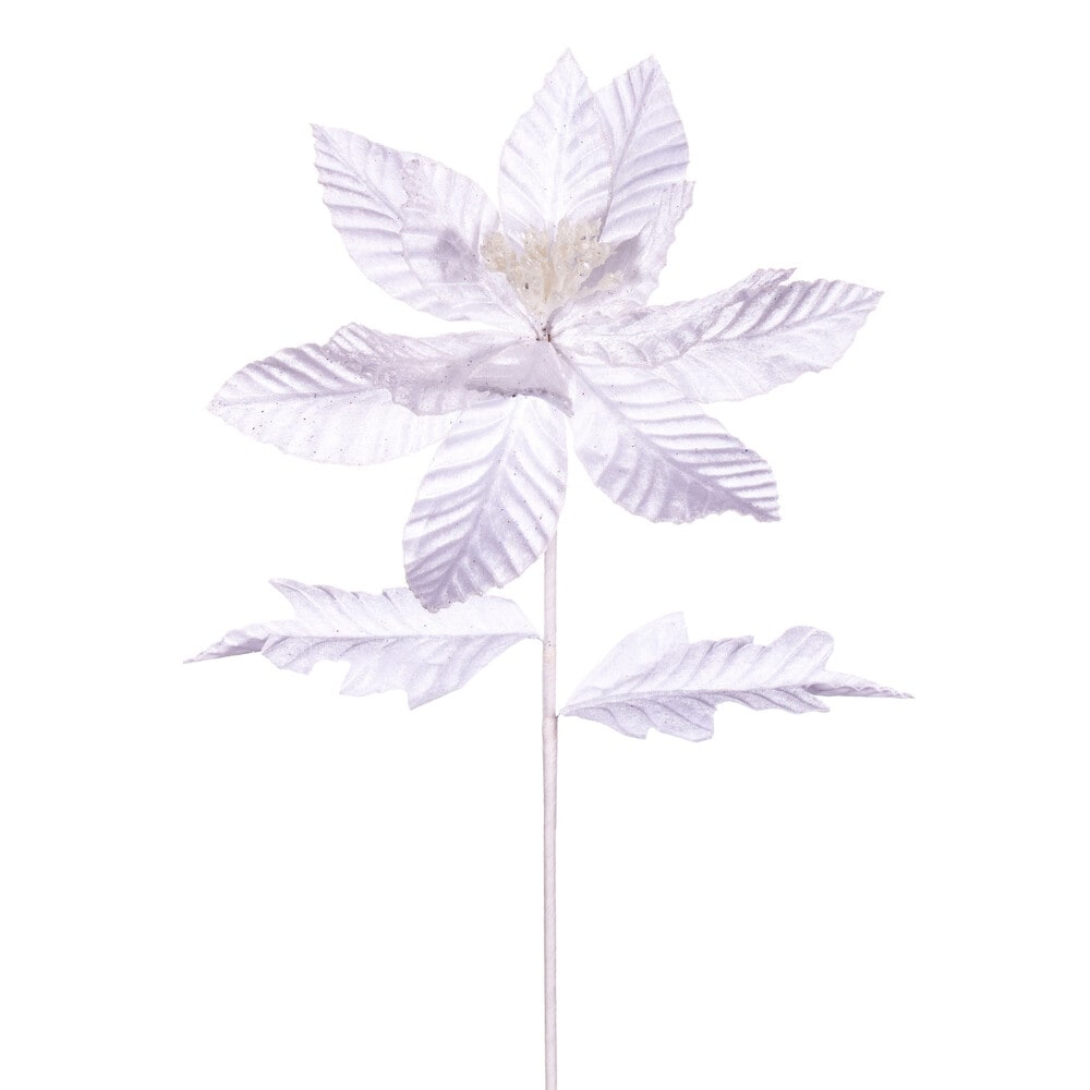 Vickerman 22" White Velvet Glitter Trim Poinsettia, 6 per bag.