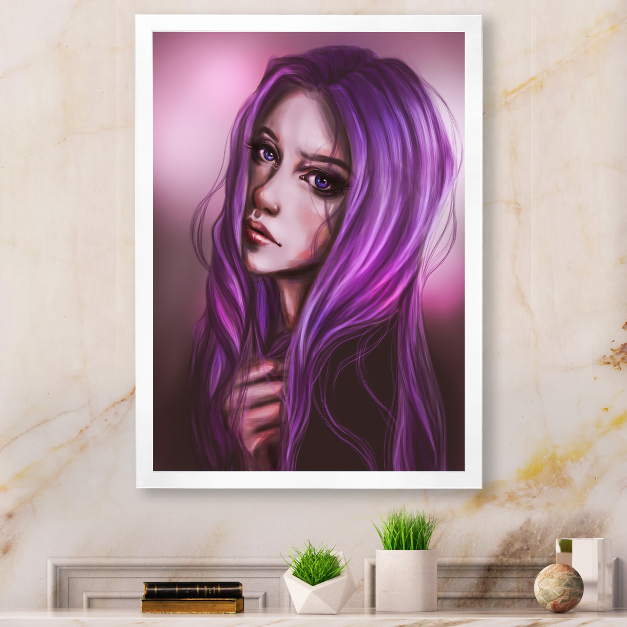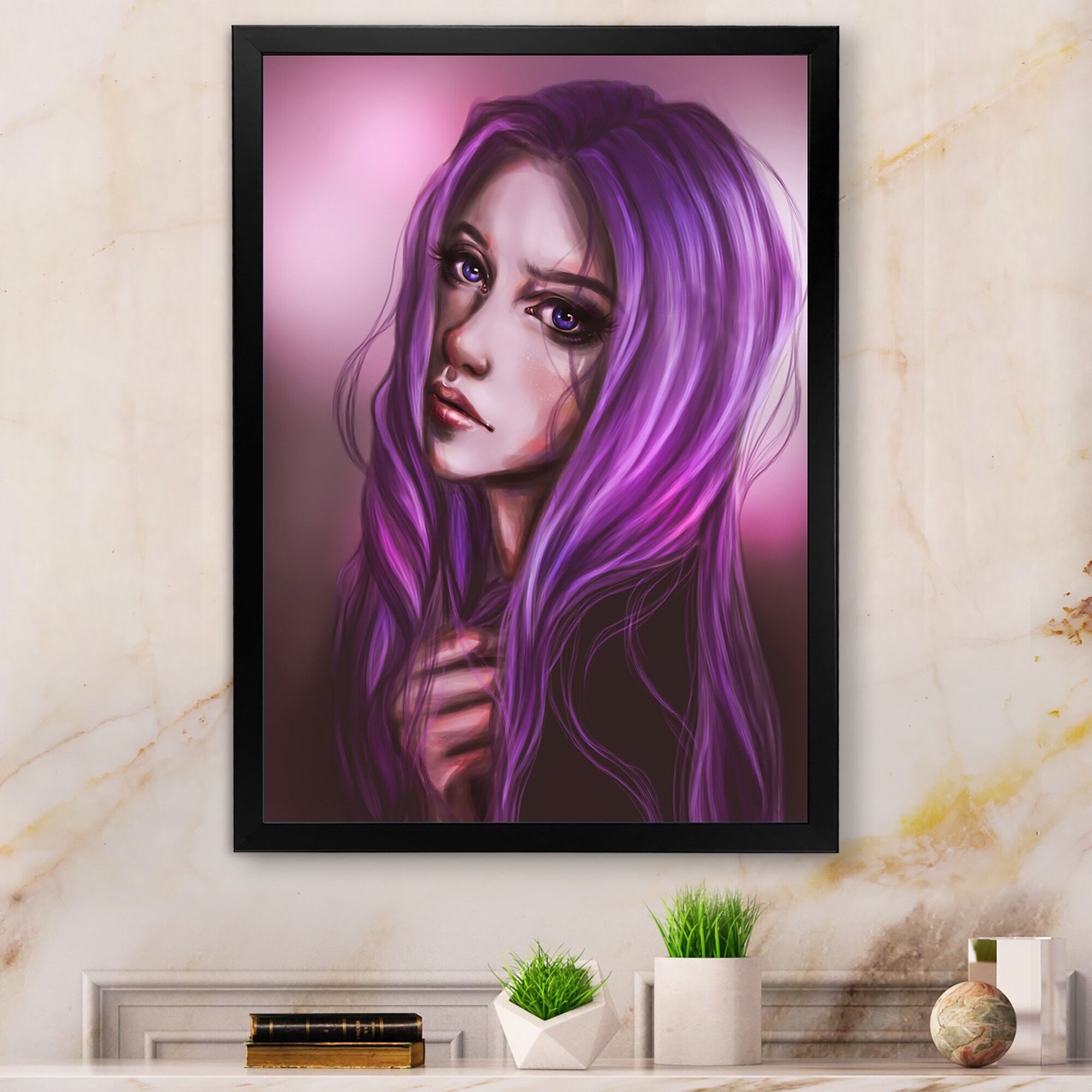 Designart "Girl Crying With Purple Hair" Glam Framed Wall Decor