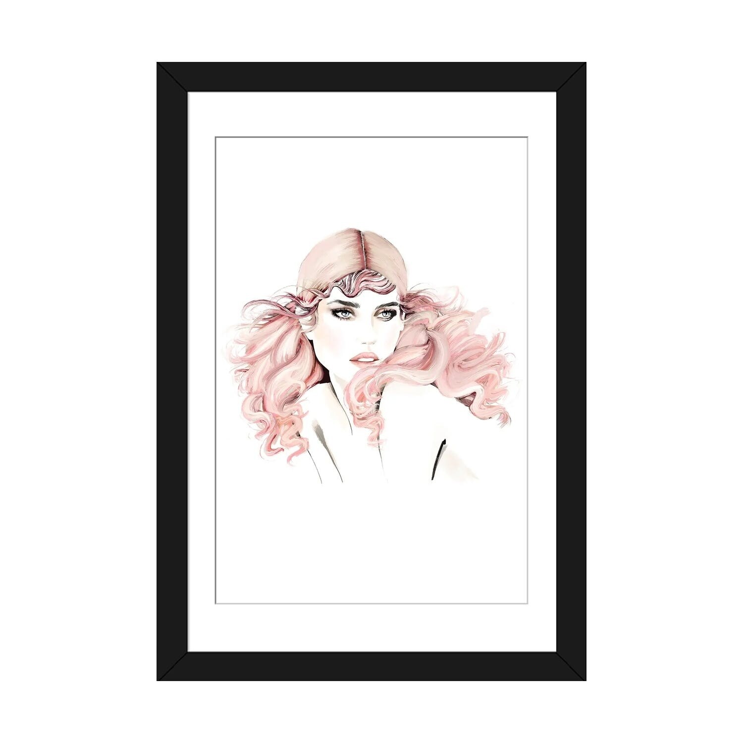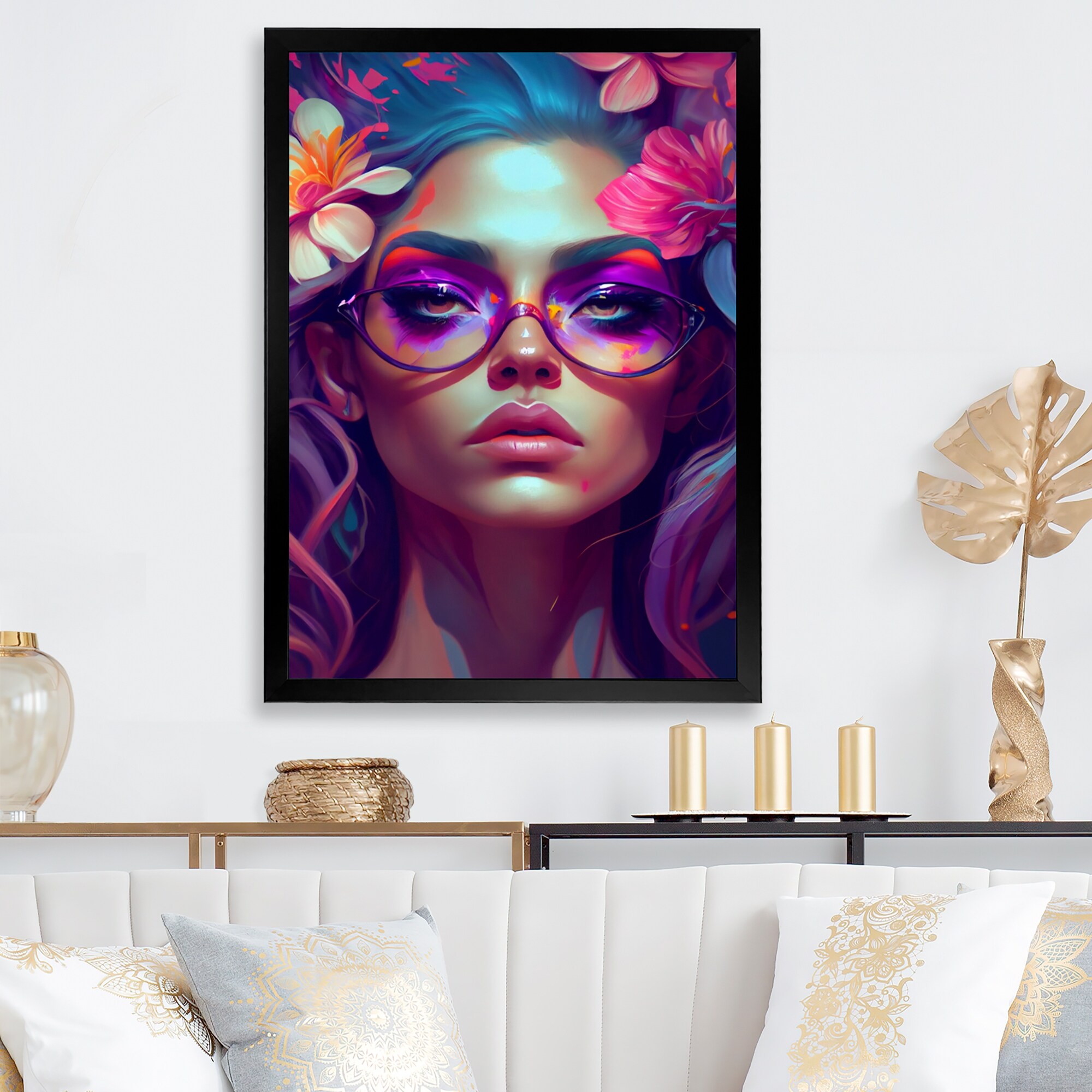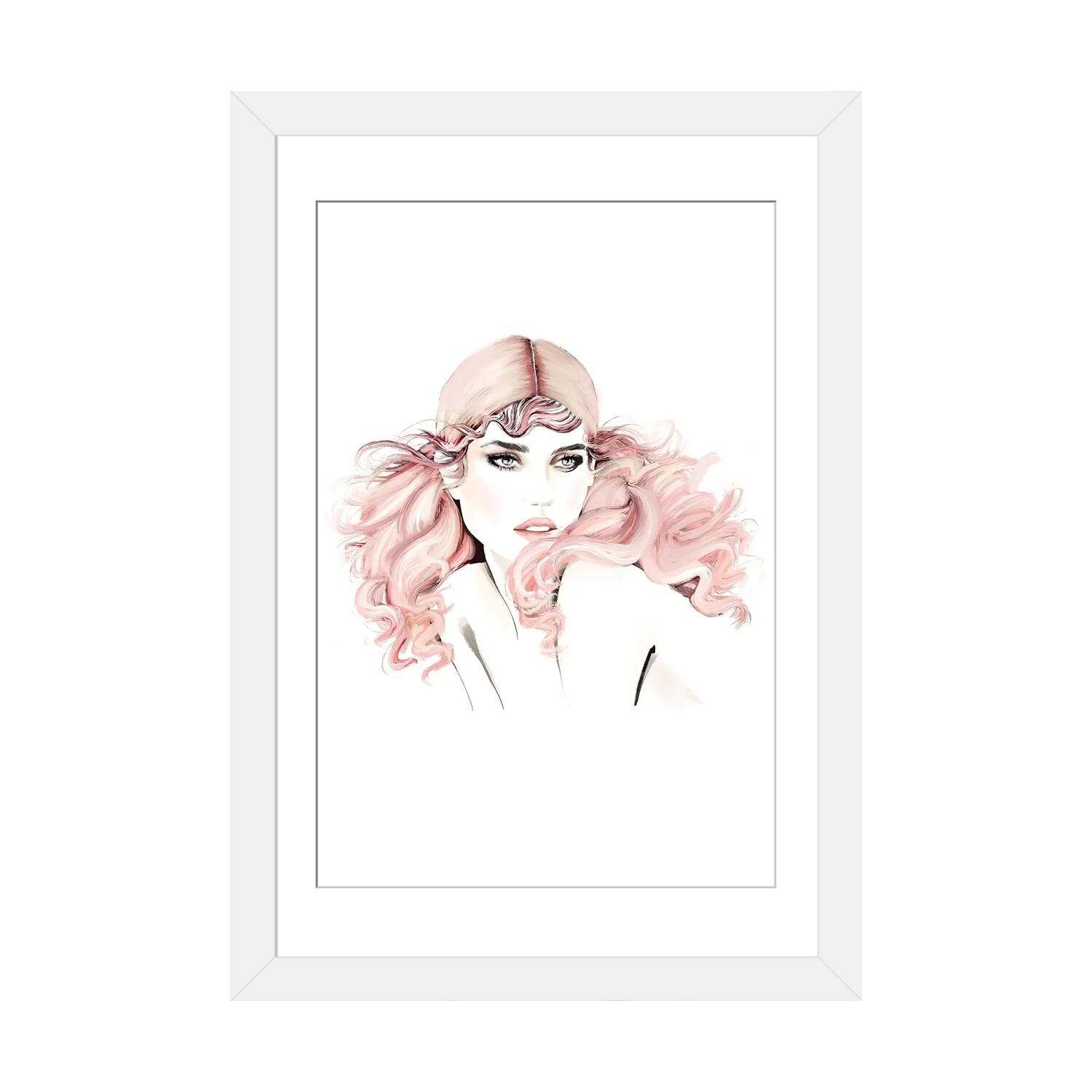 Designart "Delicate Portrait of a Fashion Woman With Pink Hair" Glam Framed Wall Decor