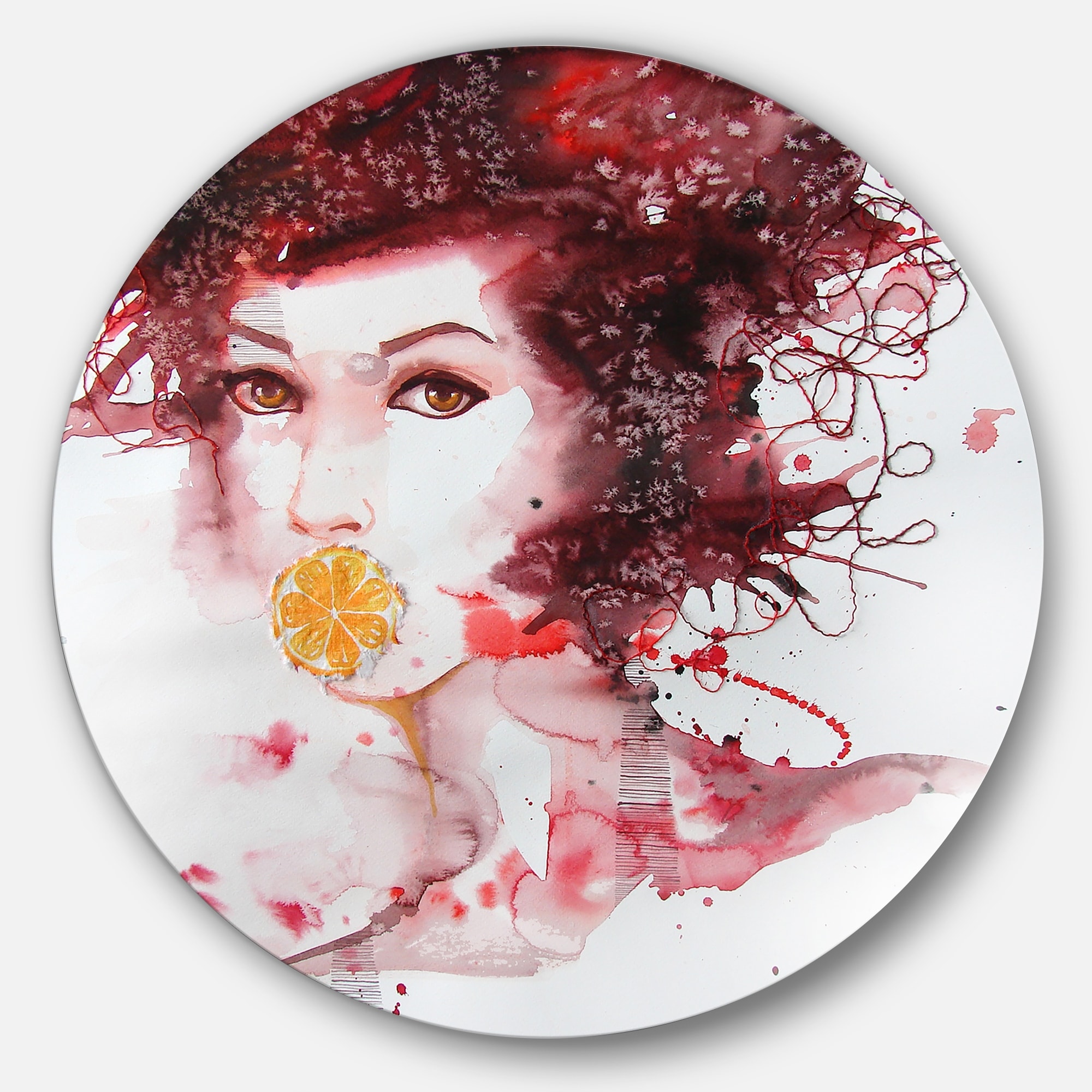 Designart 'Illustrated Girl with Red Hair' Portrait Digital Art Round Metal Wall Art