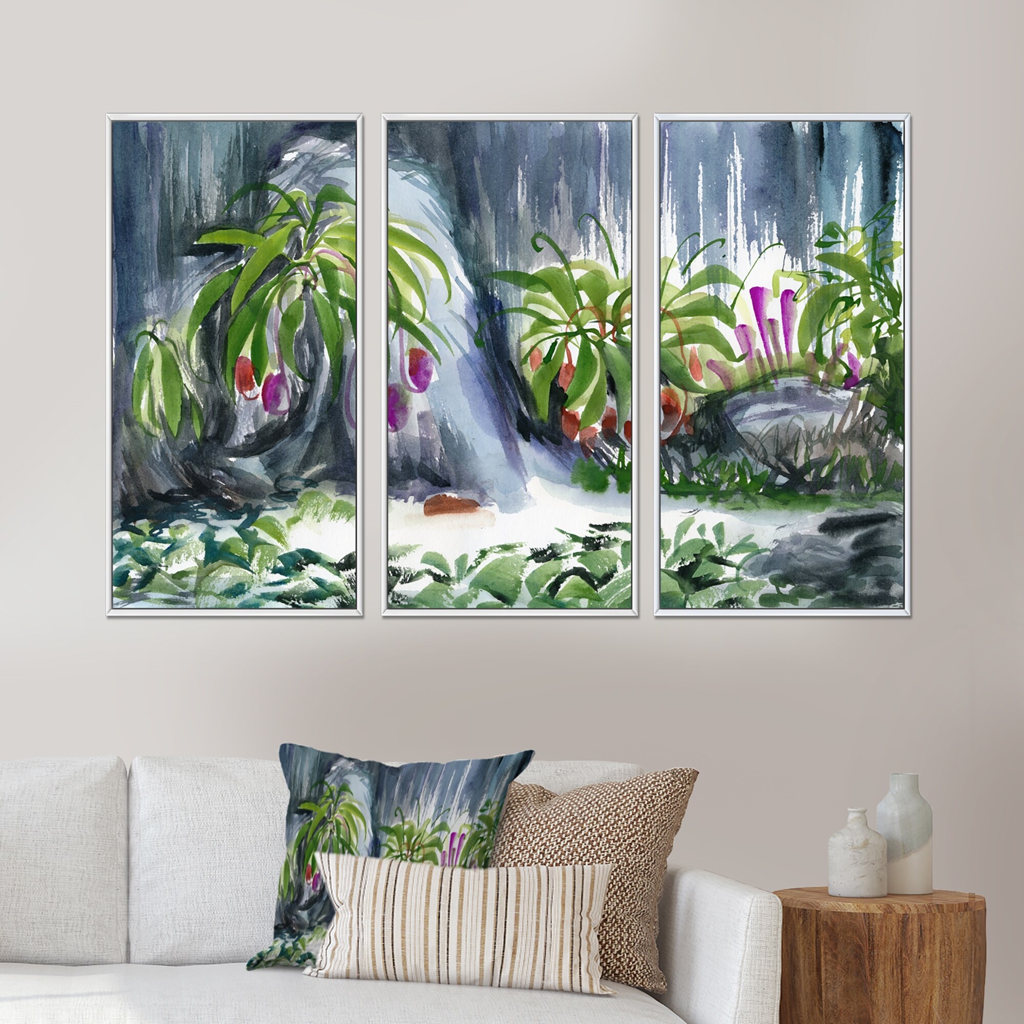 Designart "Tropical Plants Oasis" Farmhouse Framed Wall Art Set of 3 - 4 Colors of Frames
