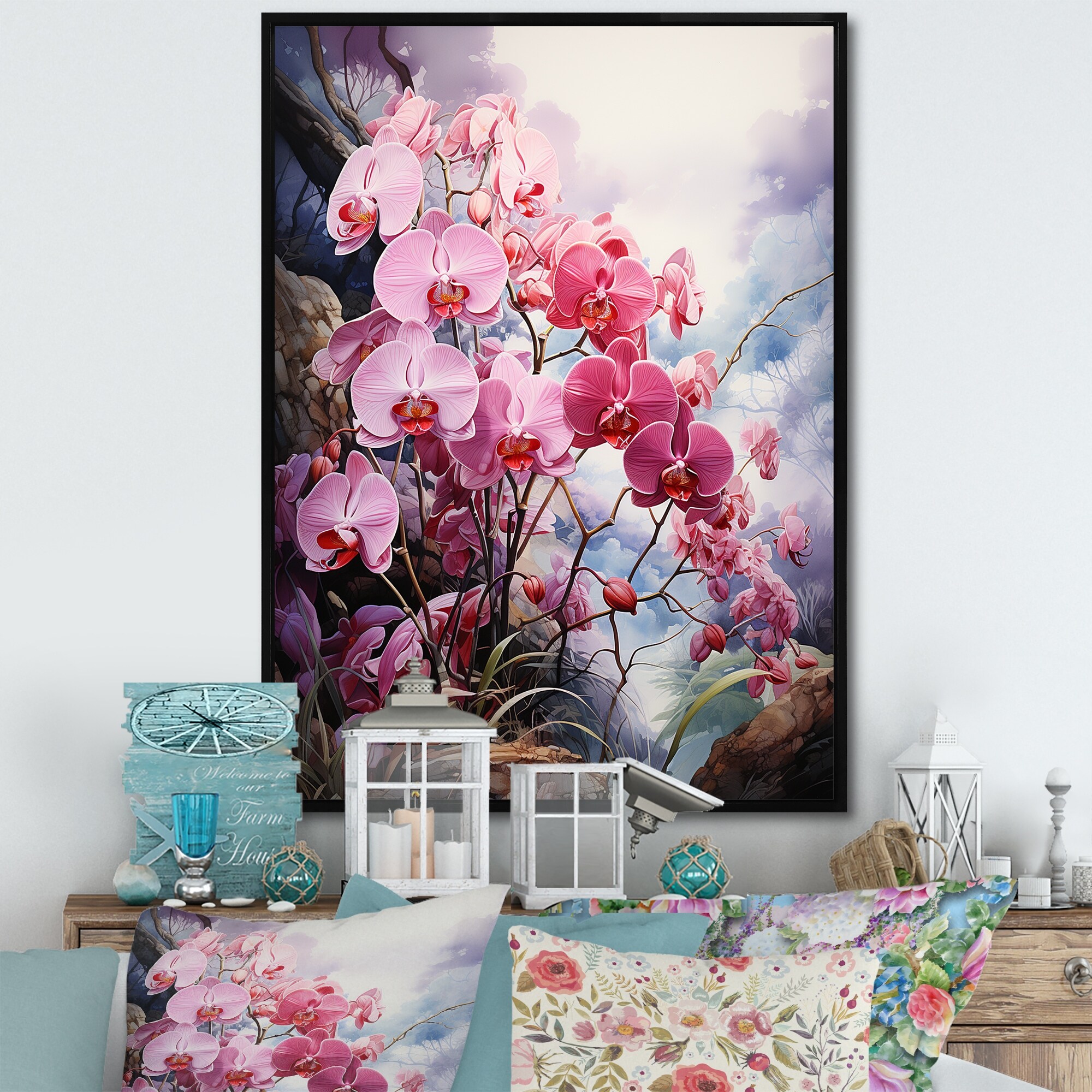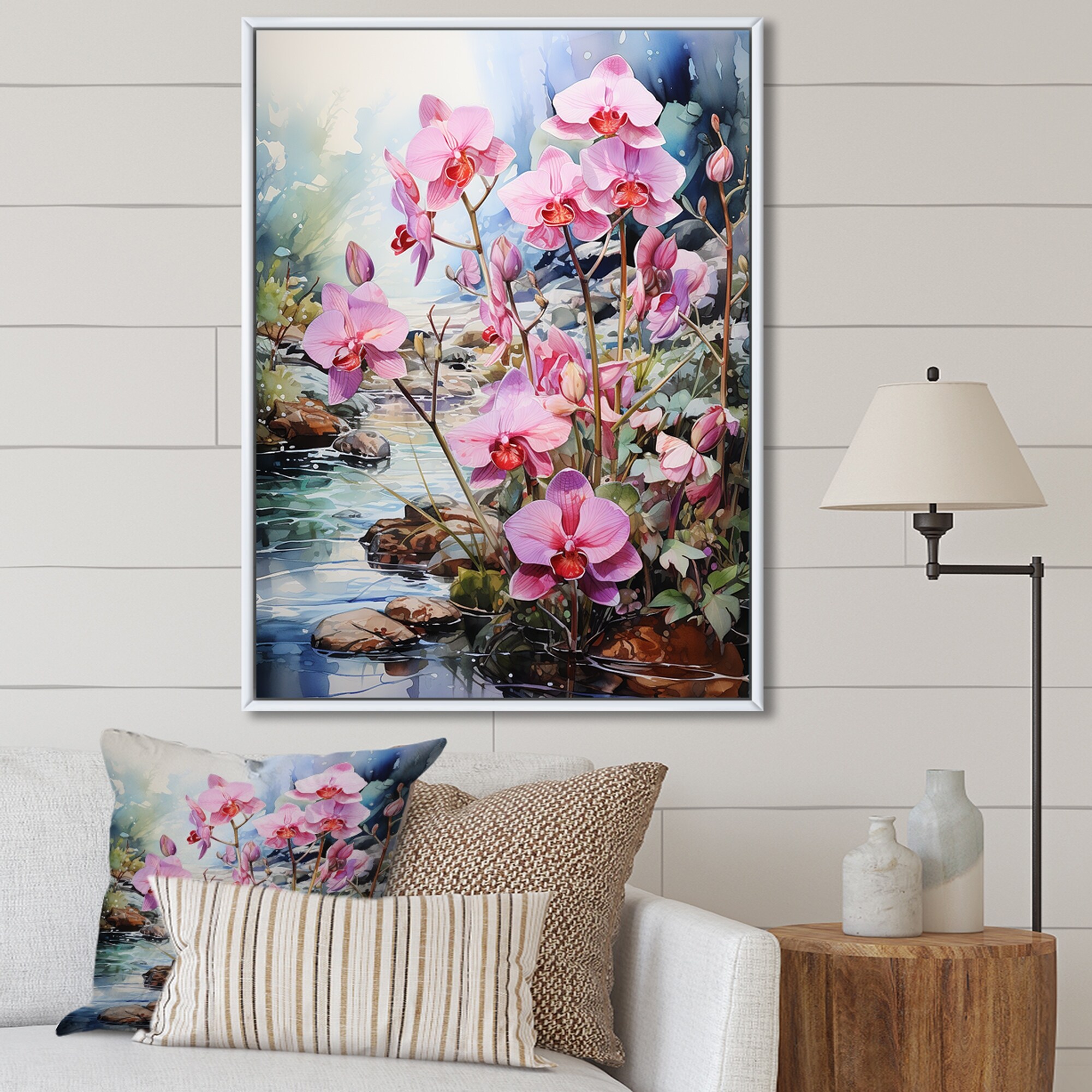 Designart "Meadow Delicate Orchid Oasis II" Meadow Framed Canvas Wall Art