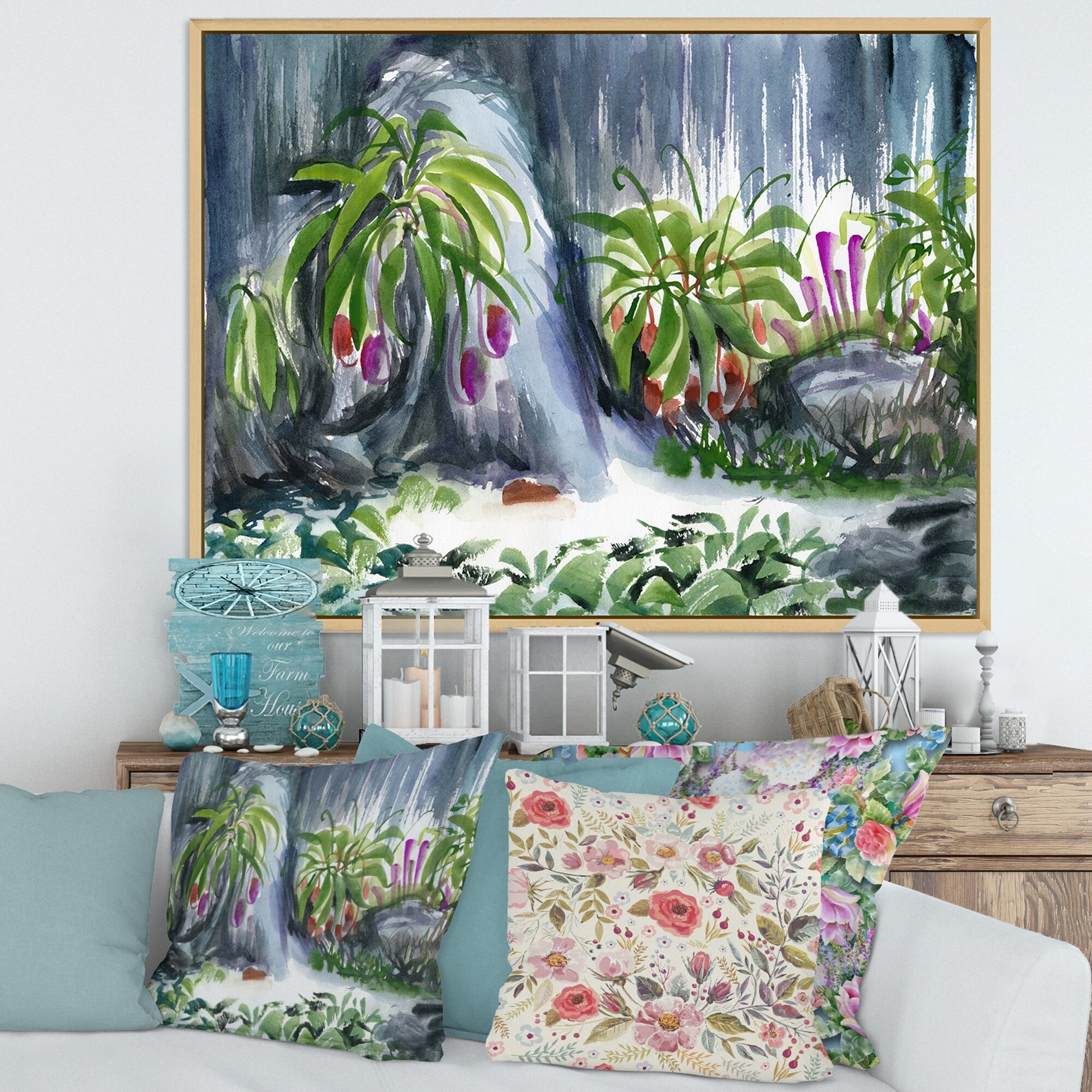 Designart "Tropical Plants Oasis" Farmhouse Framed Canvas Wall Art Print