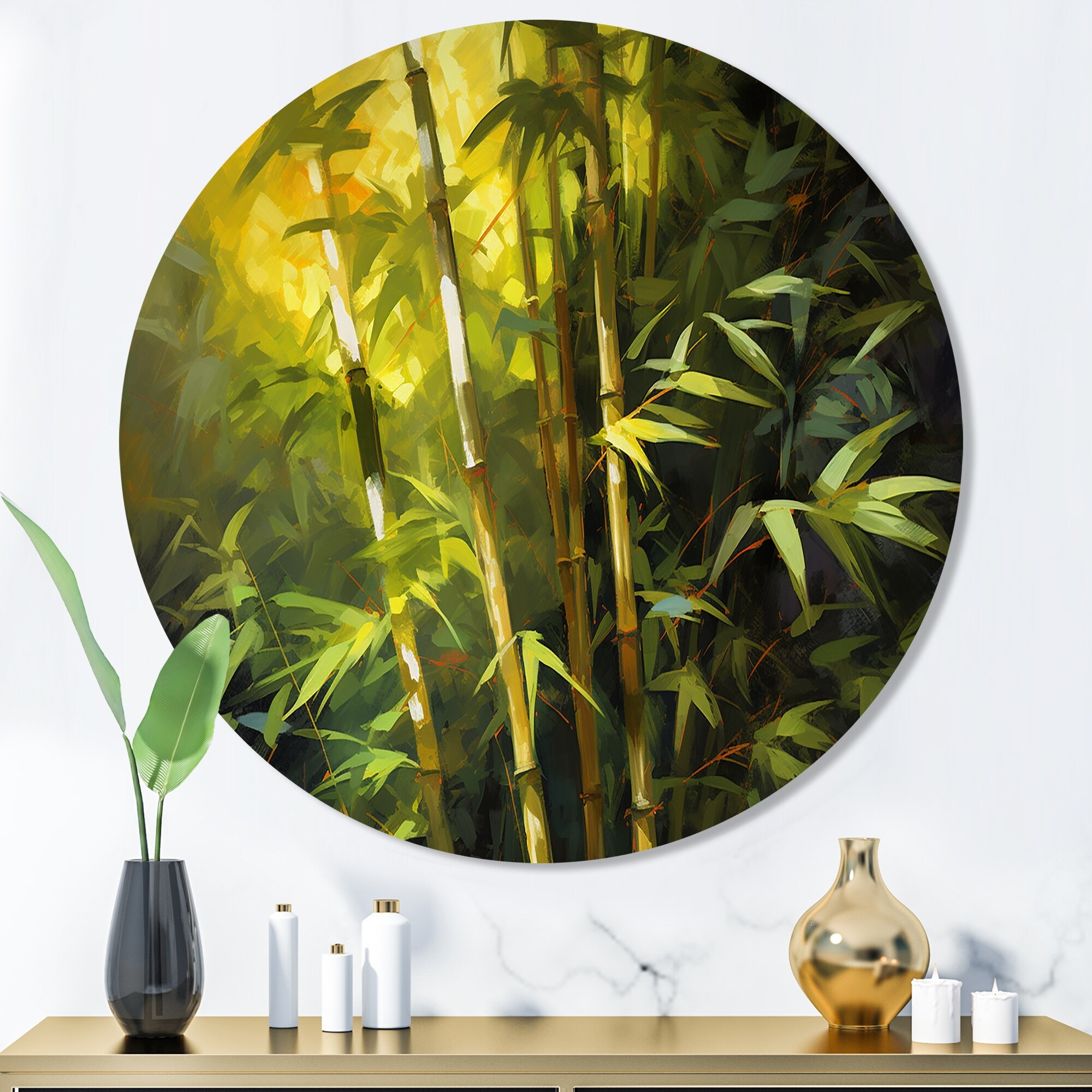 Designart "Green Floral Bamboo Oasis I" Floral Metal Round Wall Art