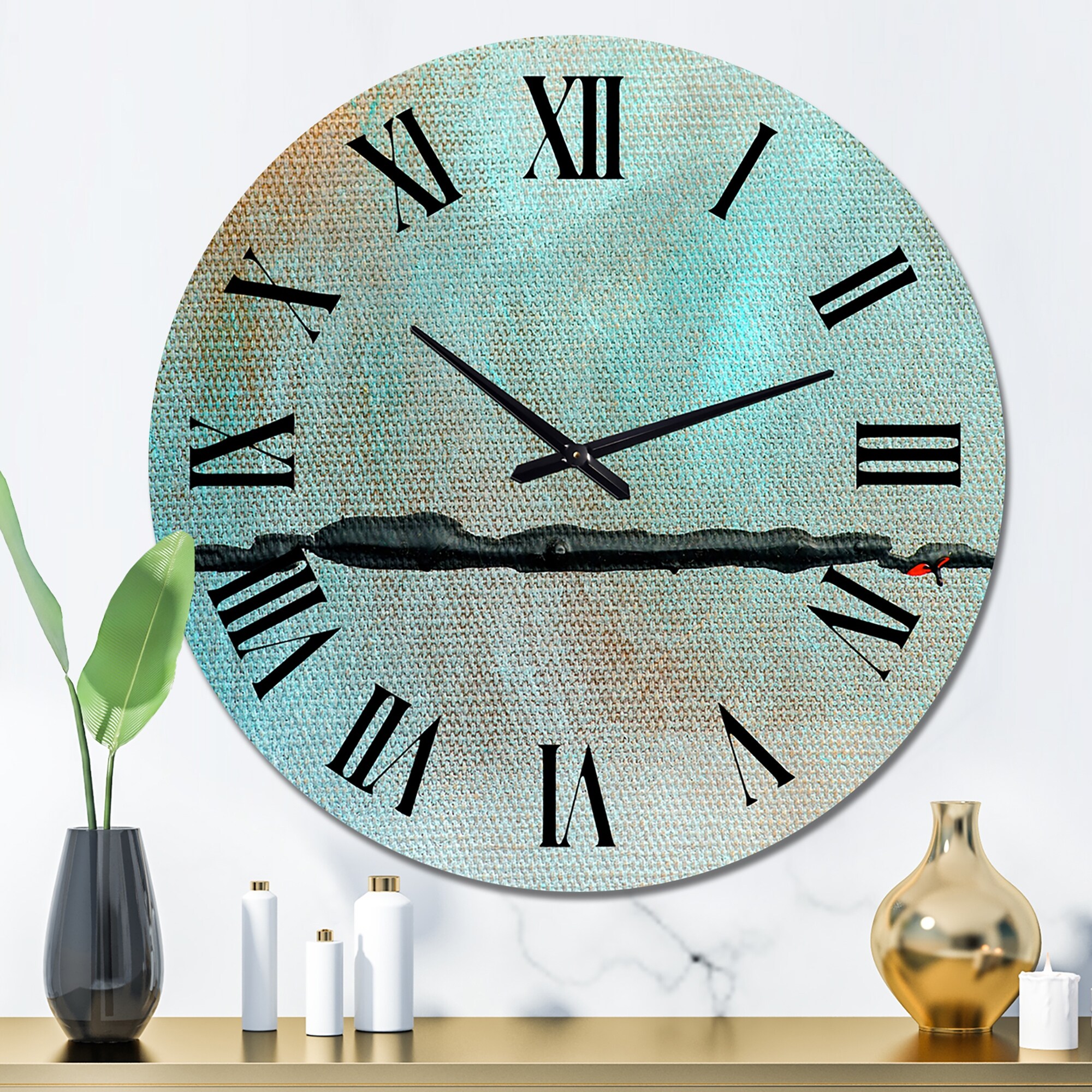 Designart 'Black River in Oasis of Blue' Modern wall clock
