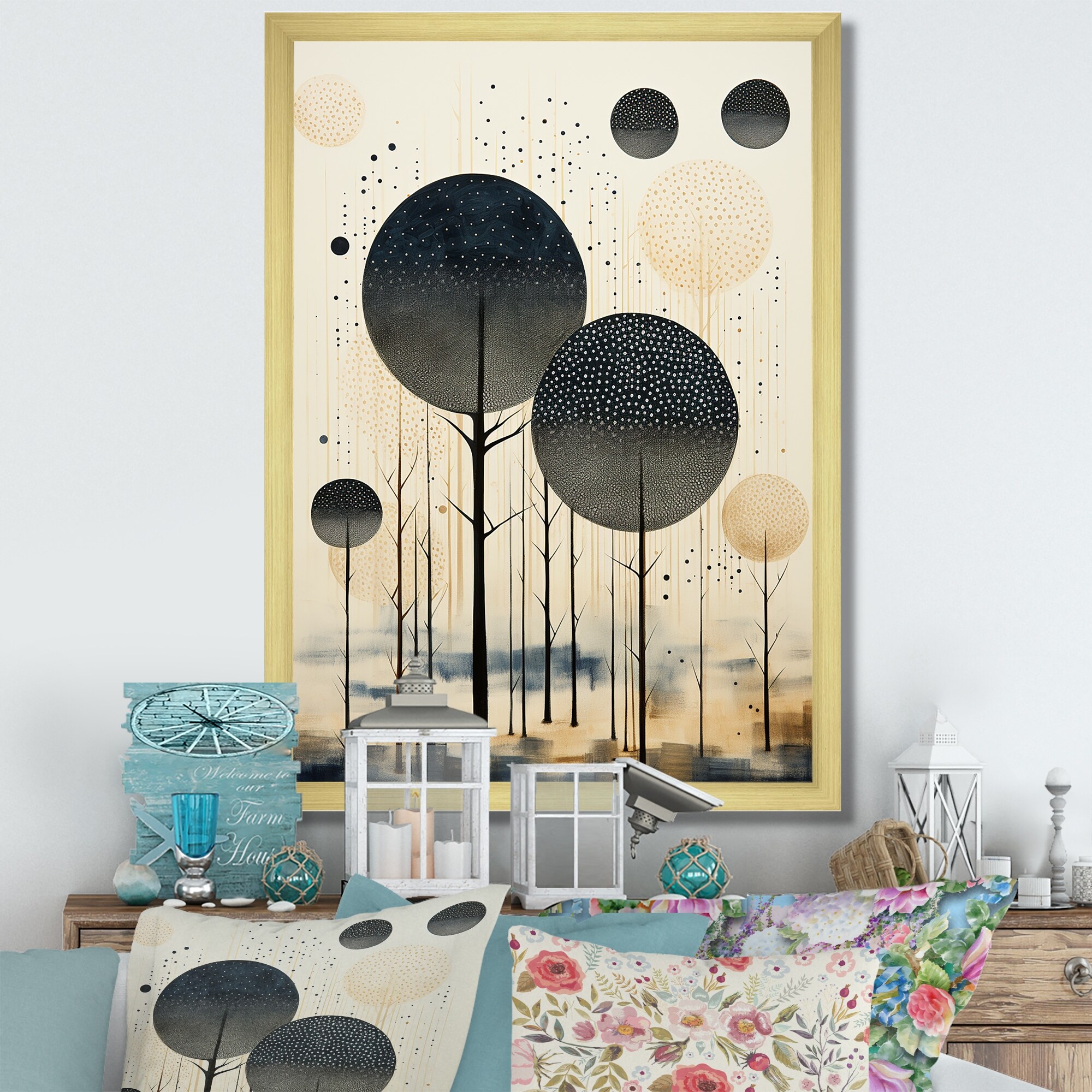 Designart "Grey Beiige Mid Century Minimalist Oasis" Abstract Collages Framed Wall Decor