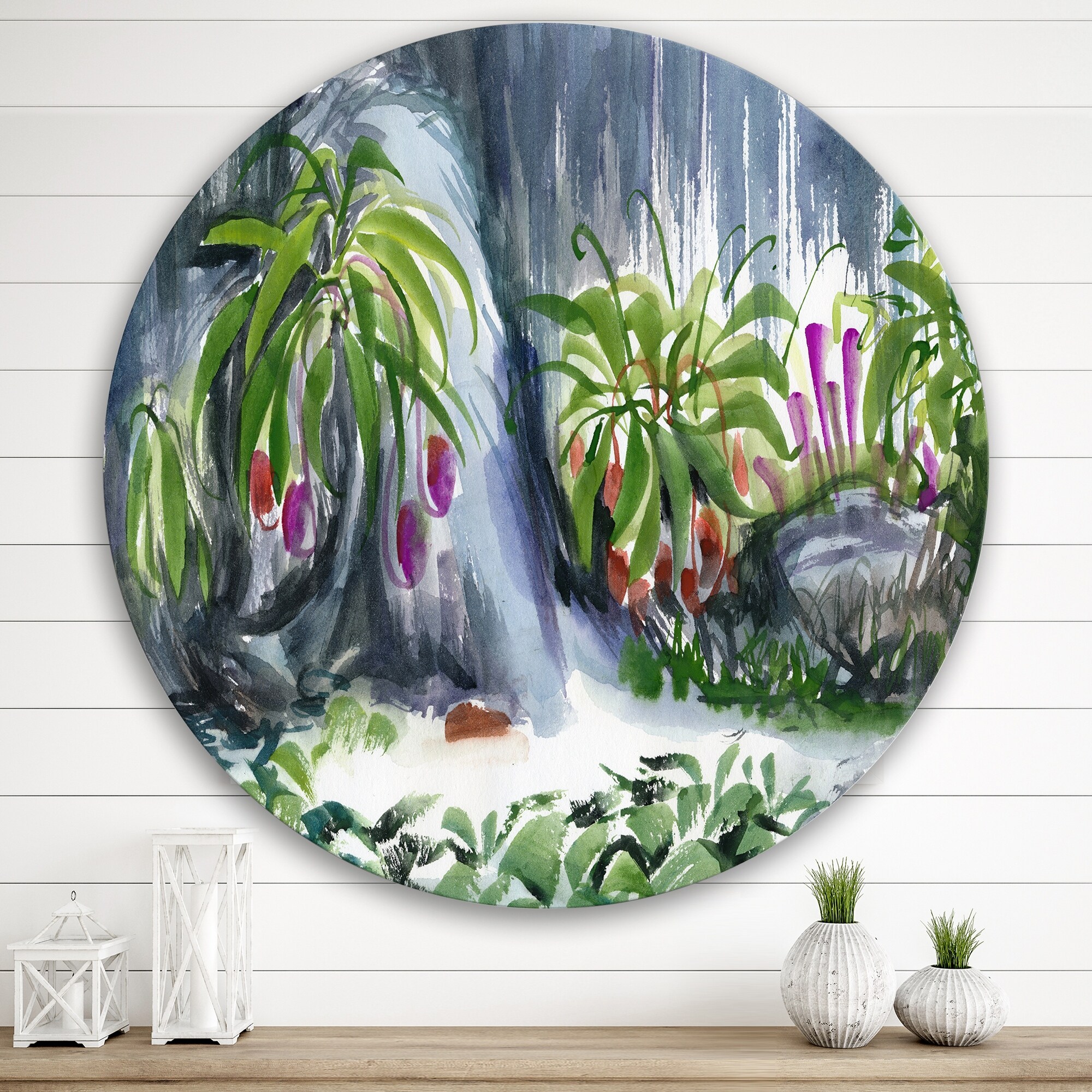 Designart 'Tropical Plants Oasis' Farmhouse Metal Circle Wall Art