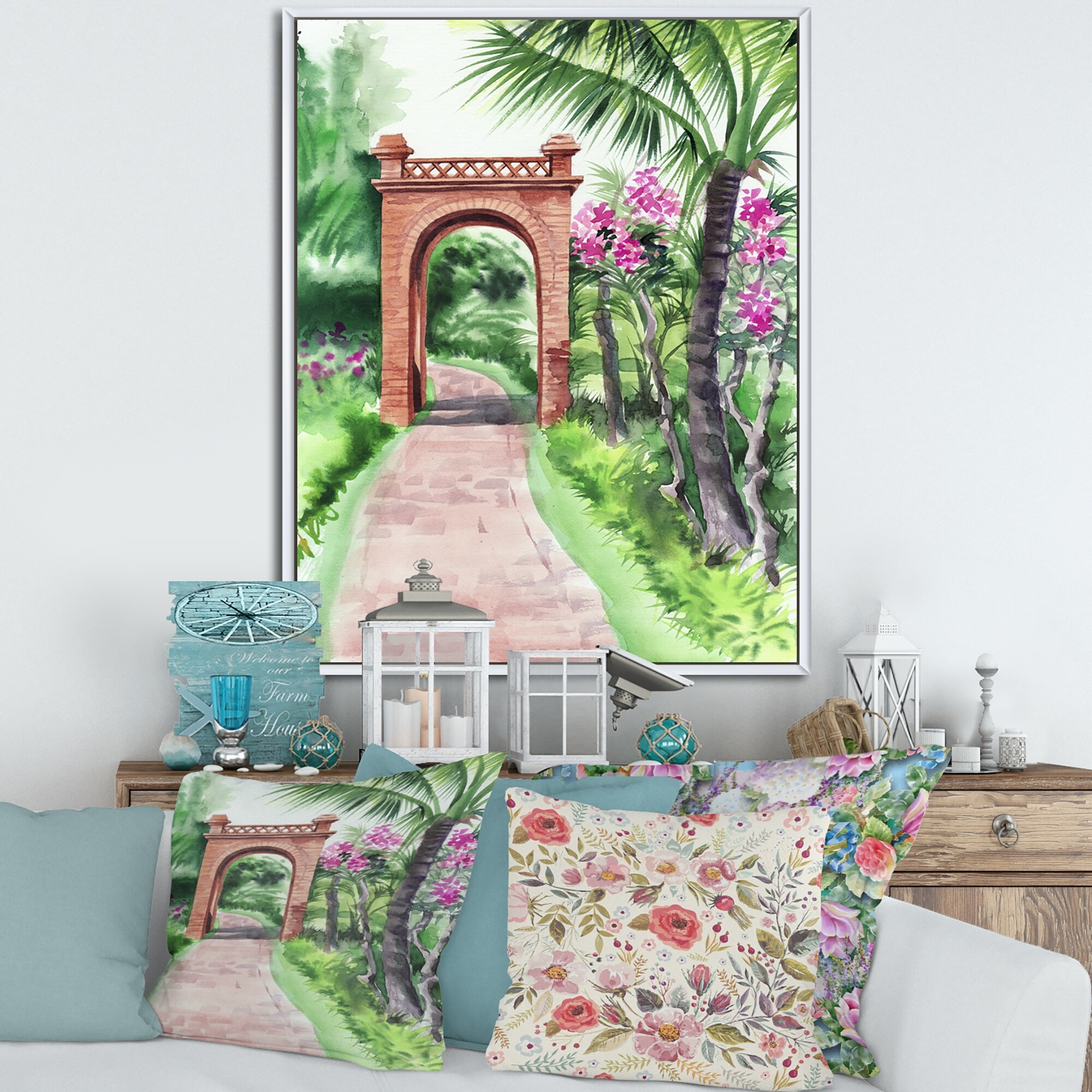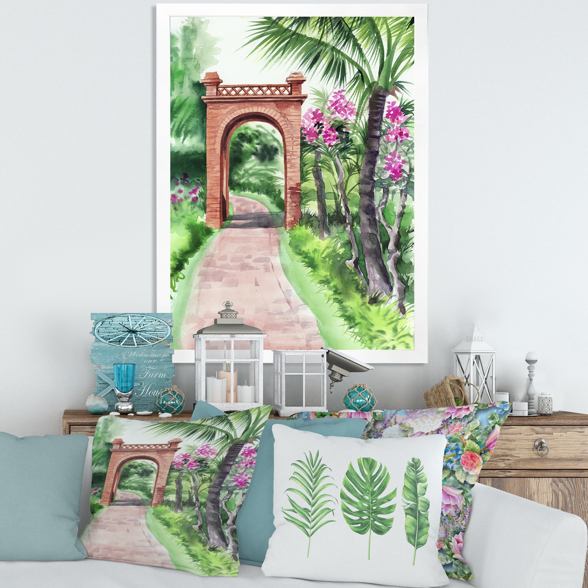 Designart "Traditional Gate in Tropical Oasis" Tropical Framed Canvas Wall Art Print
