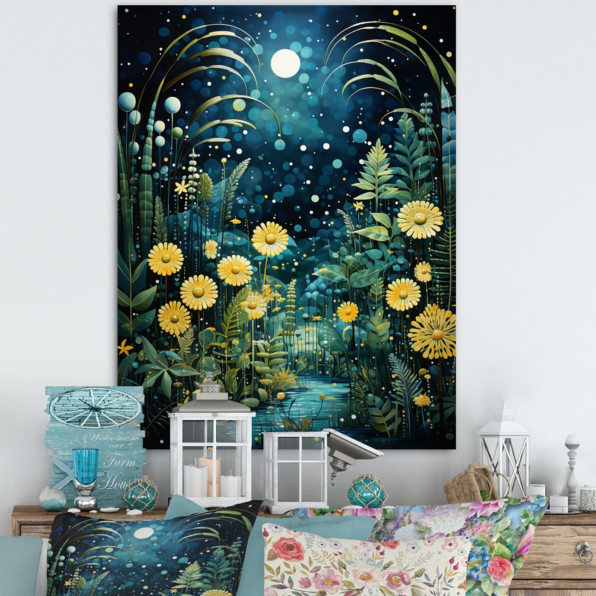 Designart "Teal Yellow Mid Century Minimalist Oasis II" Abstract Collages Wall Art Living Room