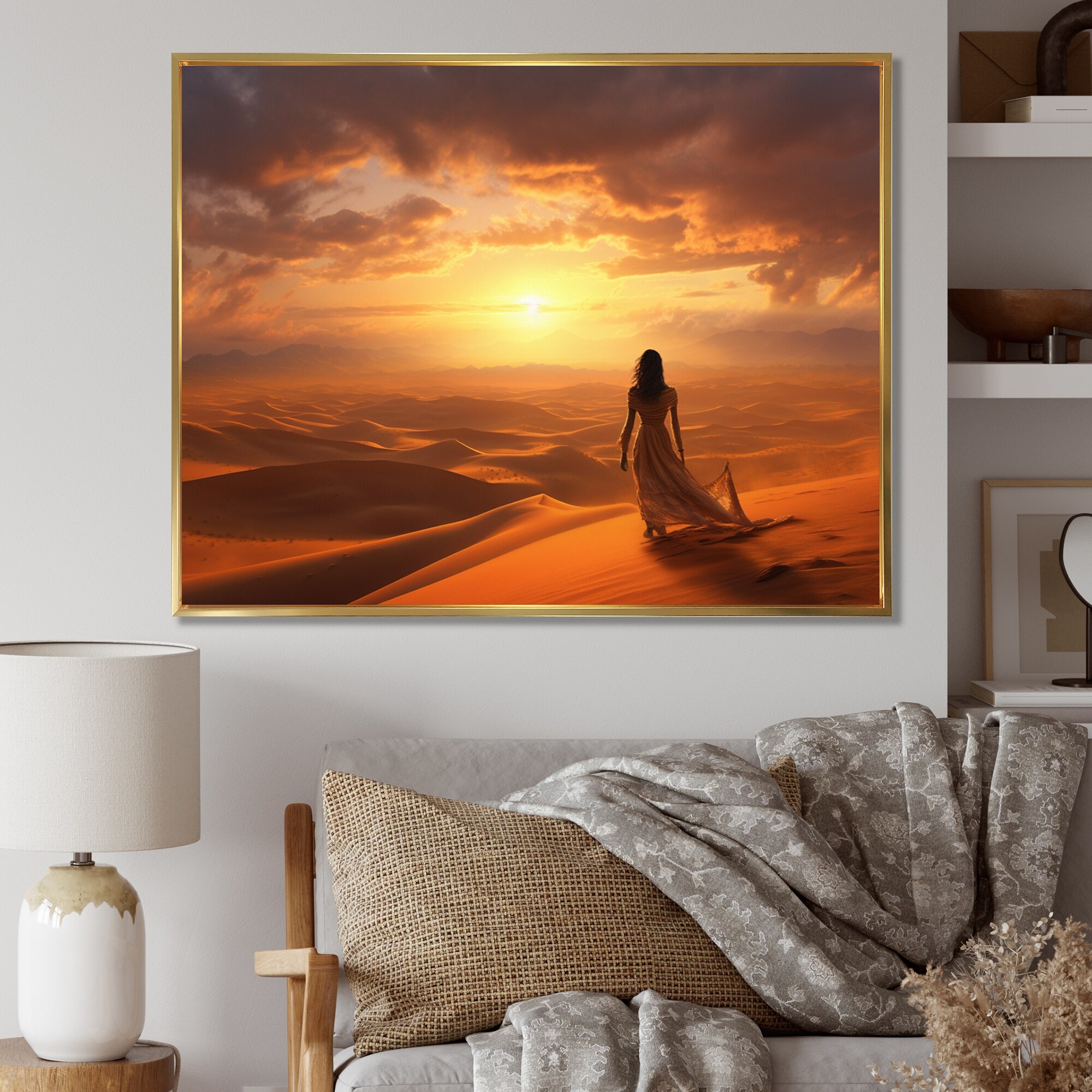 Designart "Desert Oasis I" Desert Framed Wall Art Living Room