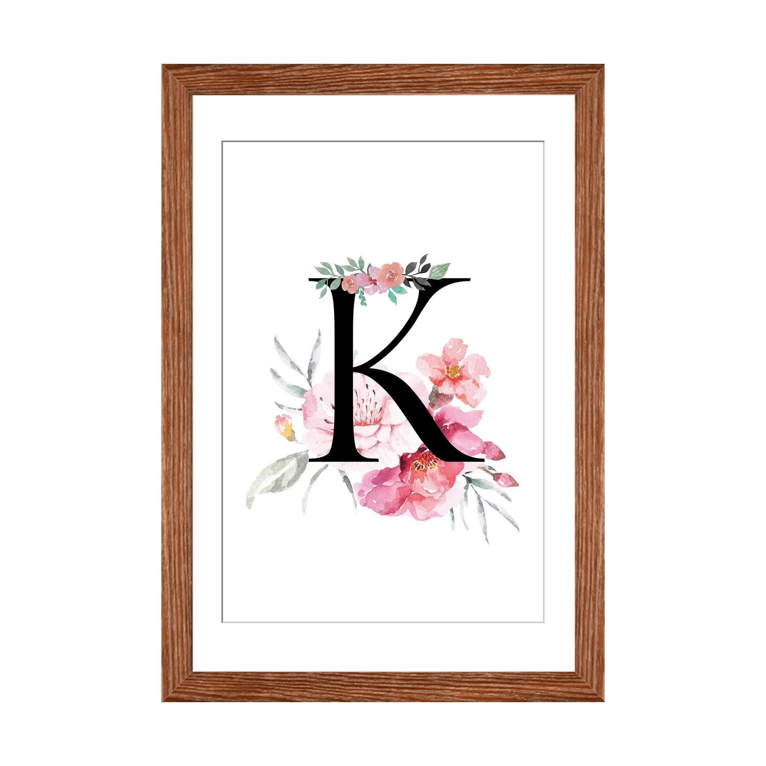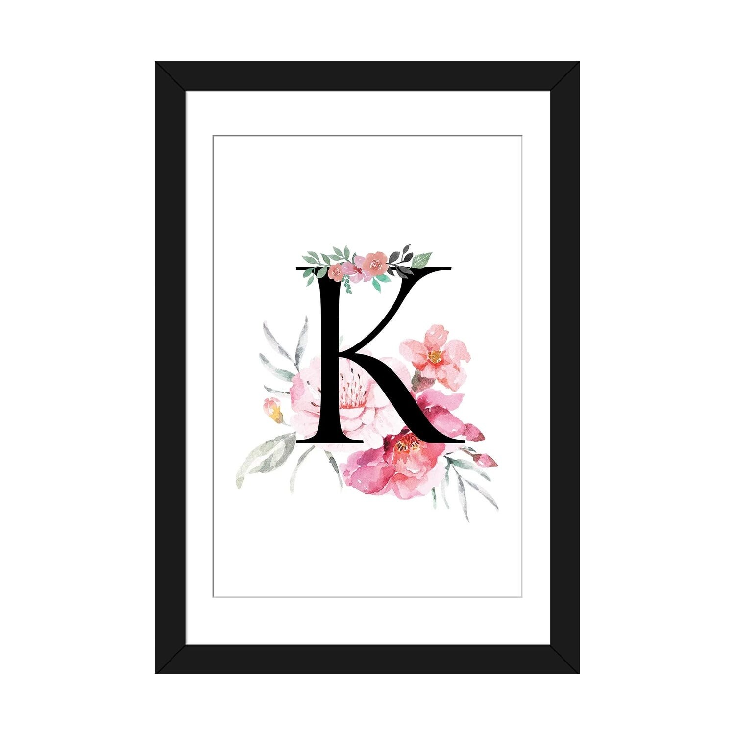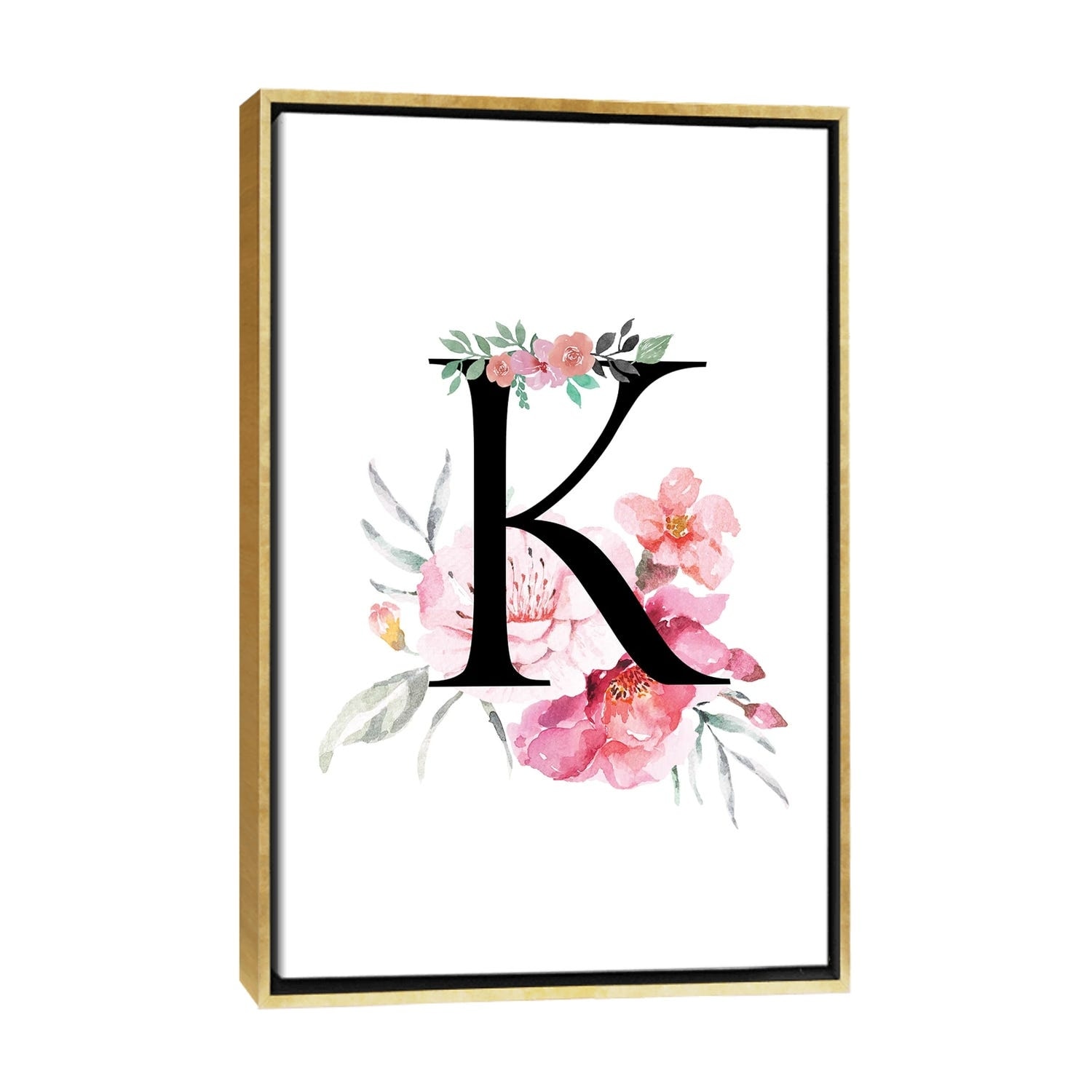 iCanvas "'K' Initial Monogram With Watercolor Flowers" by Design Harvest Framed Canvas Print