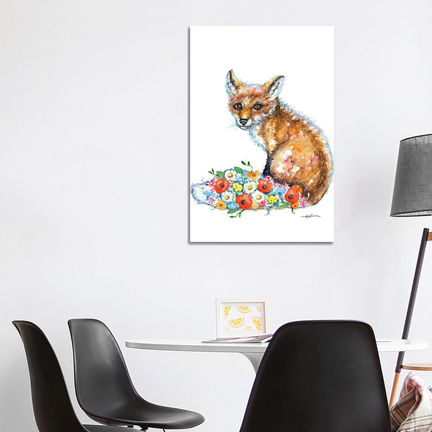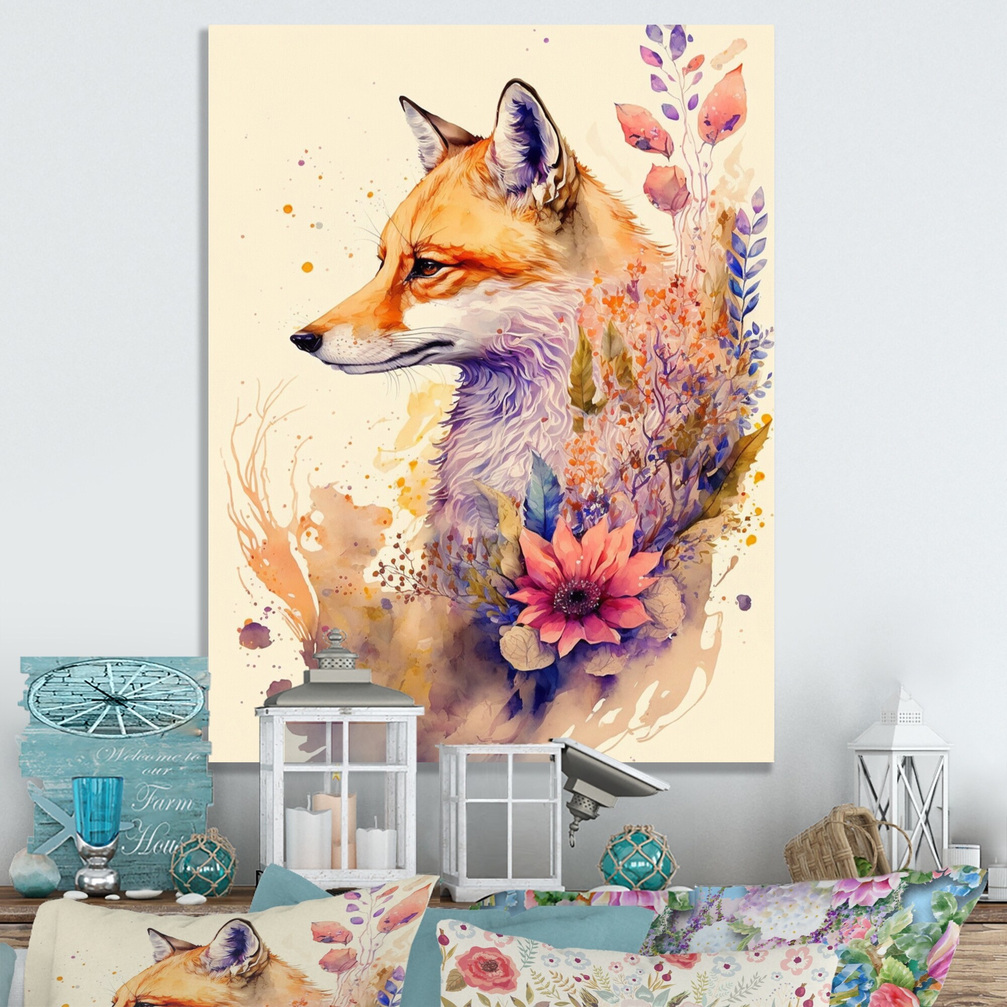 Designart 'Cute Fox Floral Art IV' Animals Canvas Wall Art