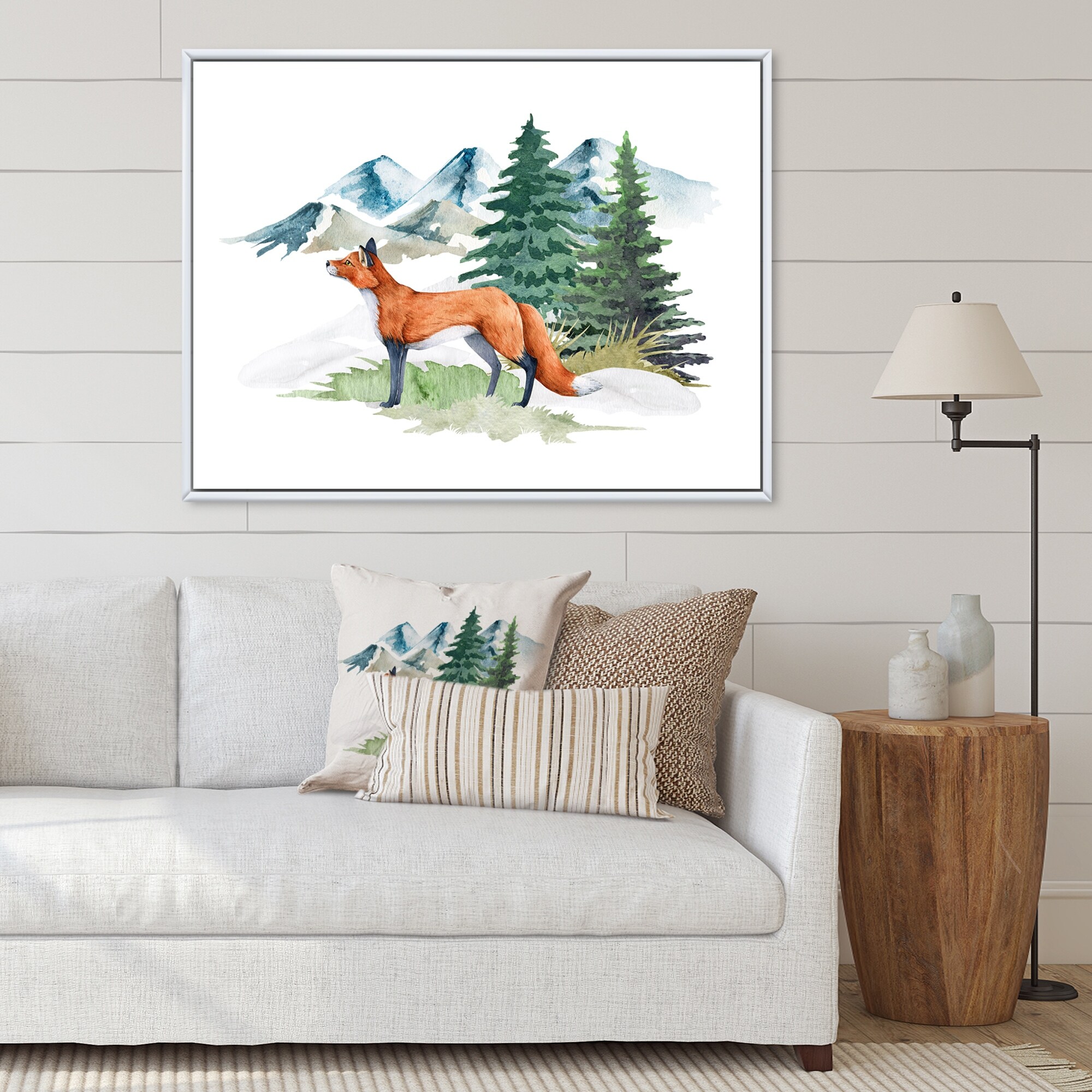 Designart "Pine Wood Fox in Winter Landscape" Traditional Framed Children's Canvas artwork