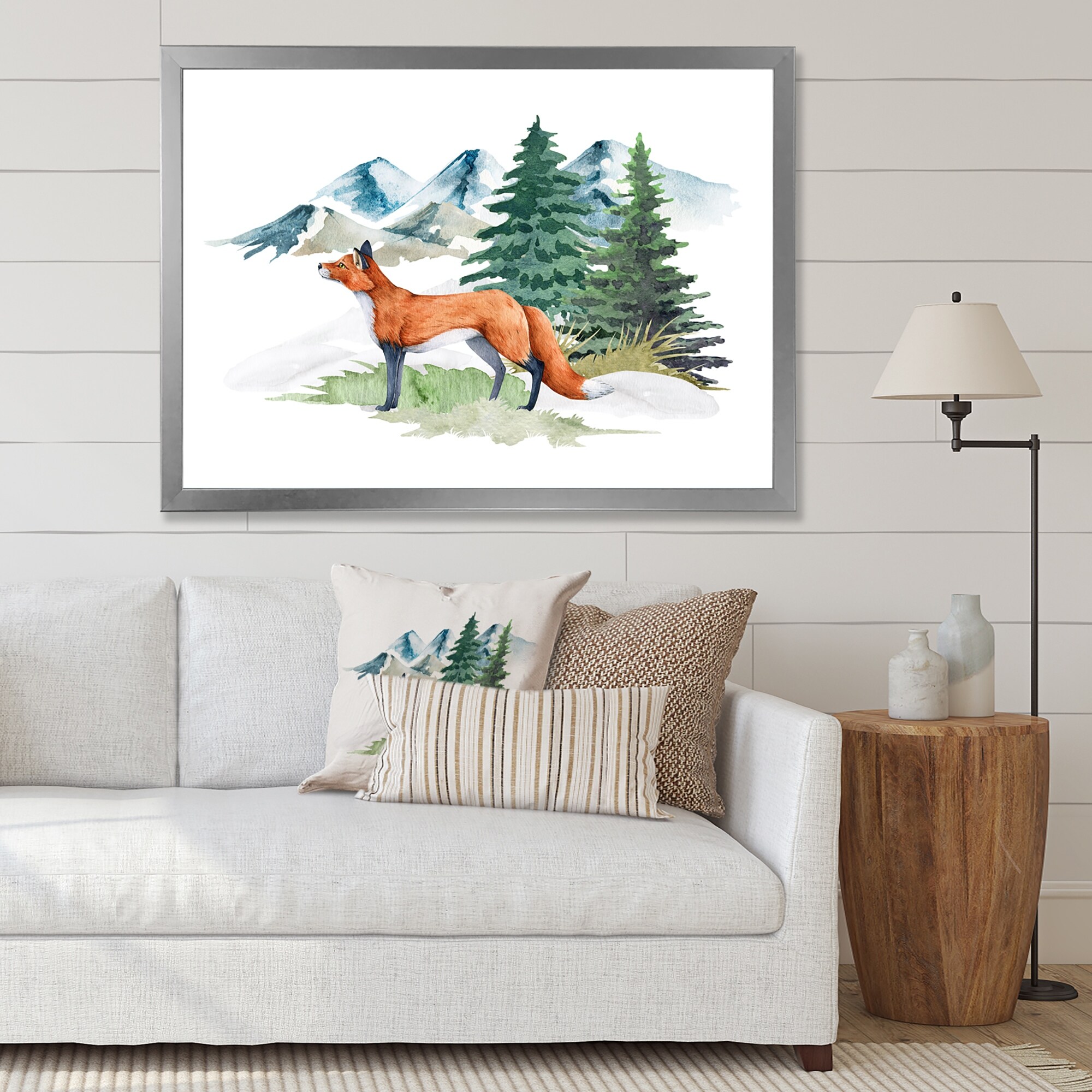 Designart "Pine Wood Fox in Winter Landscape II" Traditional Framed Children's Art Print