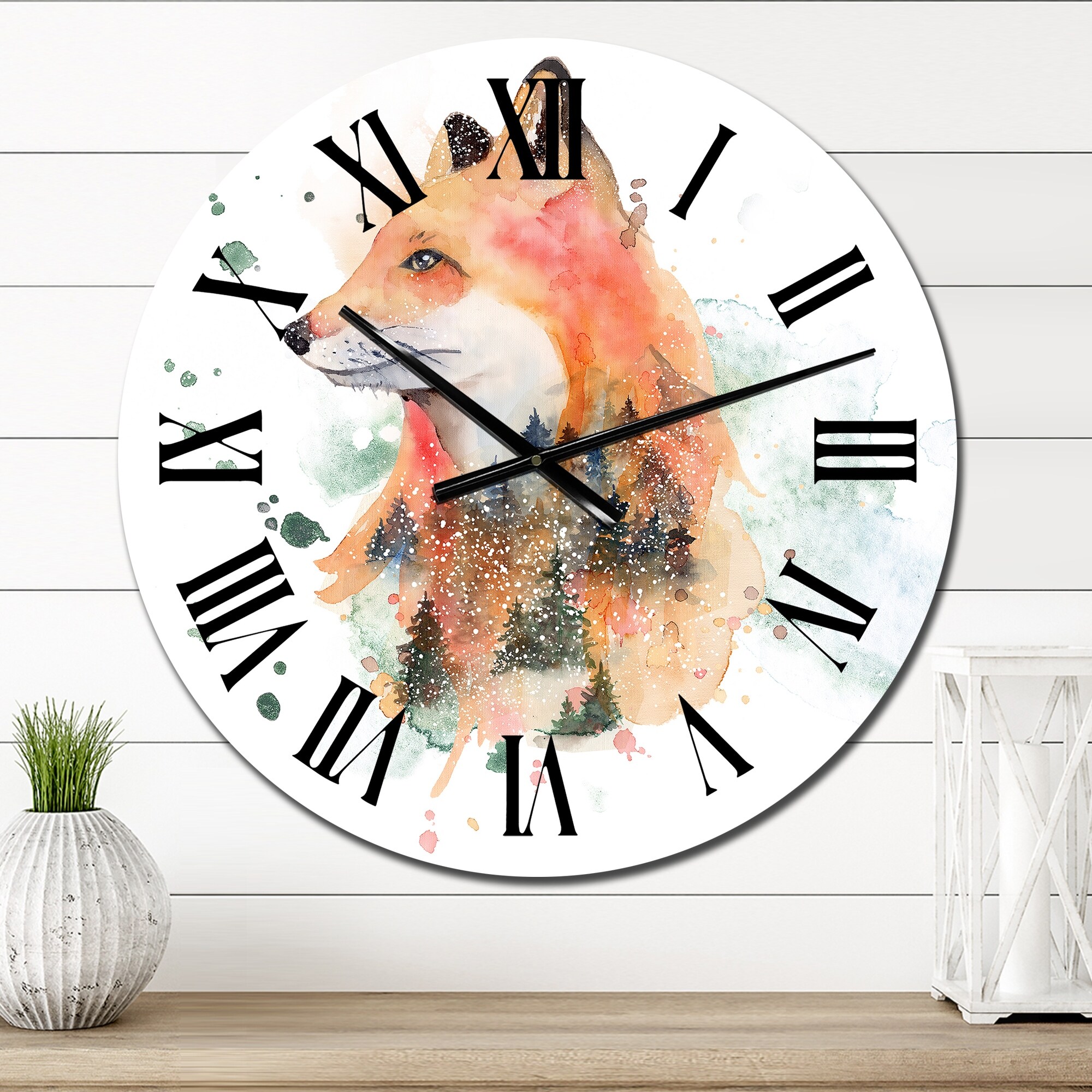 Designart 'Cartoon Orange Fox III' Traditional wall clock
