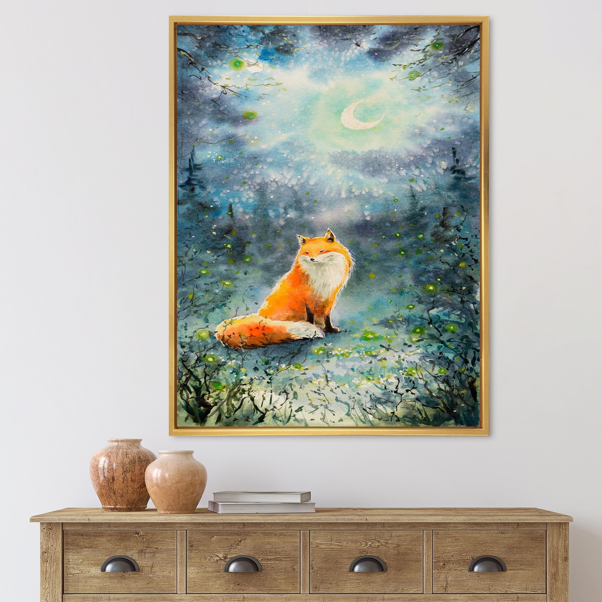 Designart "Fox Over A Night Sky" Children's Art Framed Canvas Wall Art Print