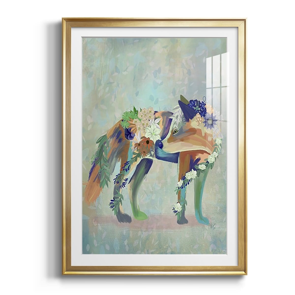 Fantastic Florals Fox, Standing Premium Framed Print - Ready to Hang