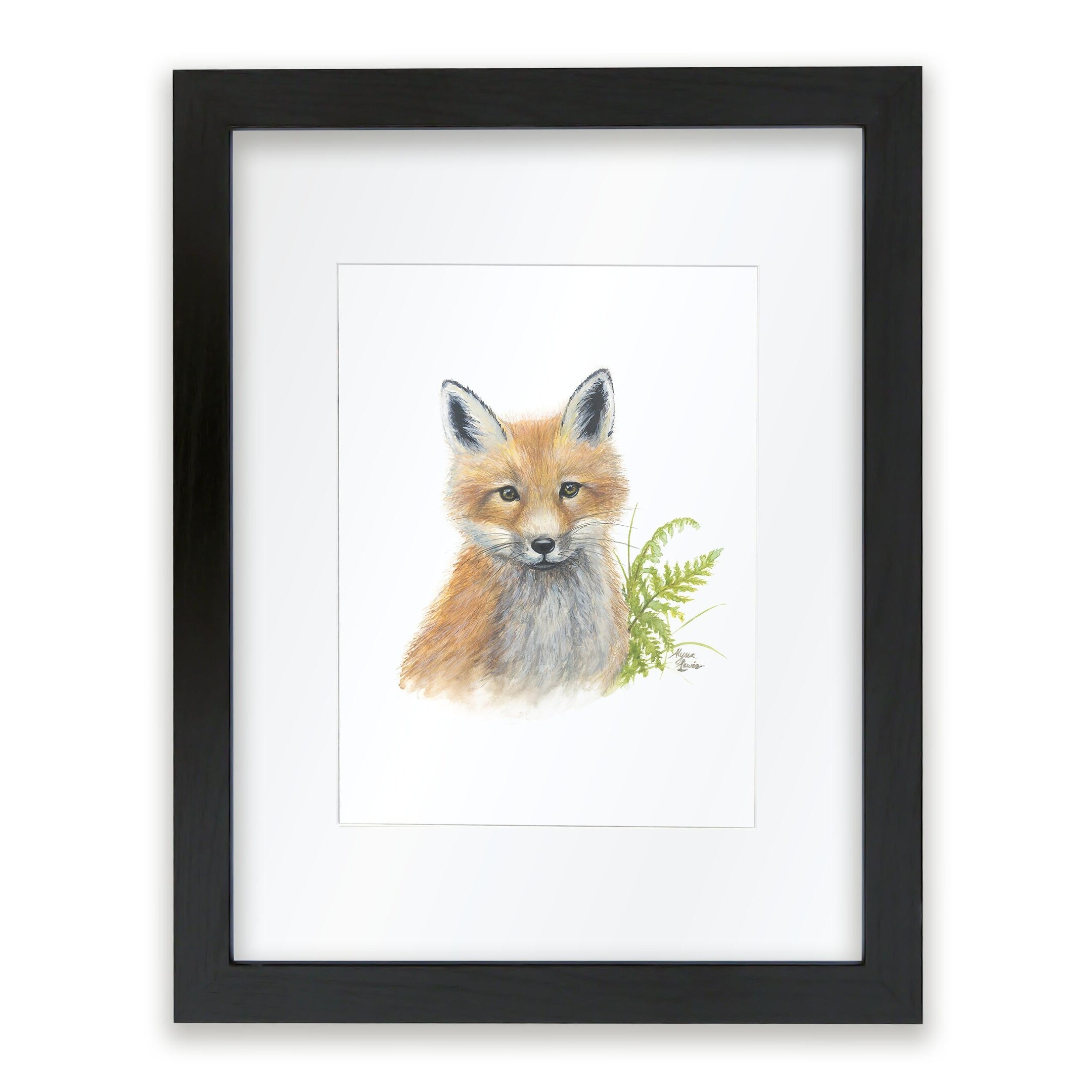 "Woodland Littles 2" - Fox - Individual Framed Print with Mat - Black - 16" x 20"