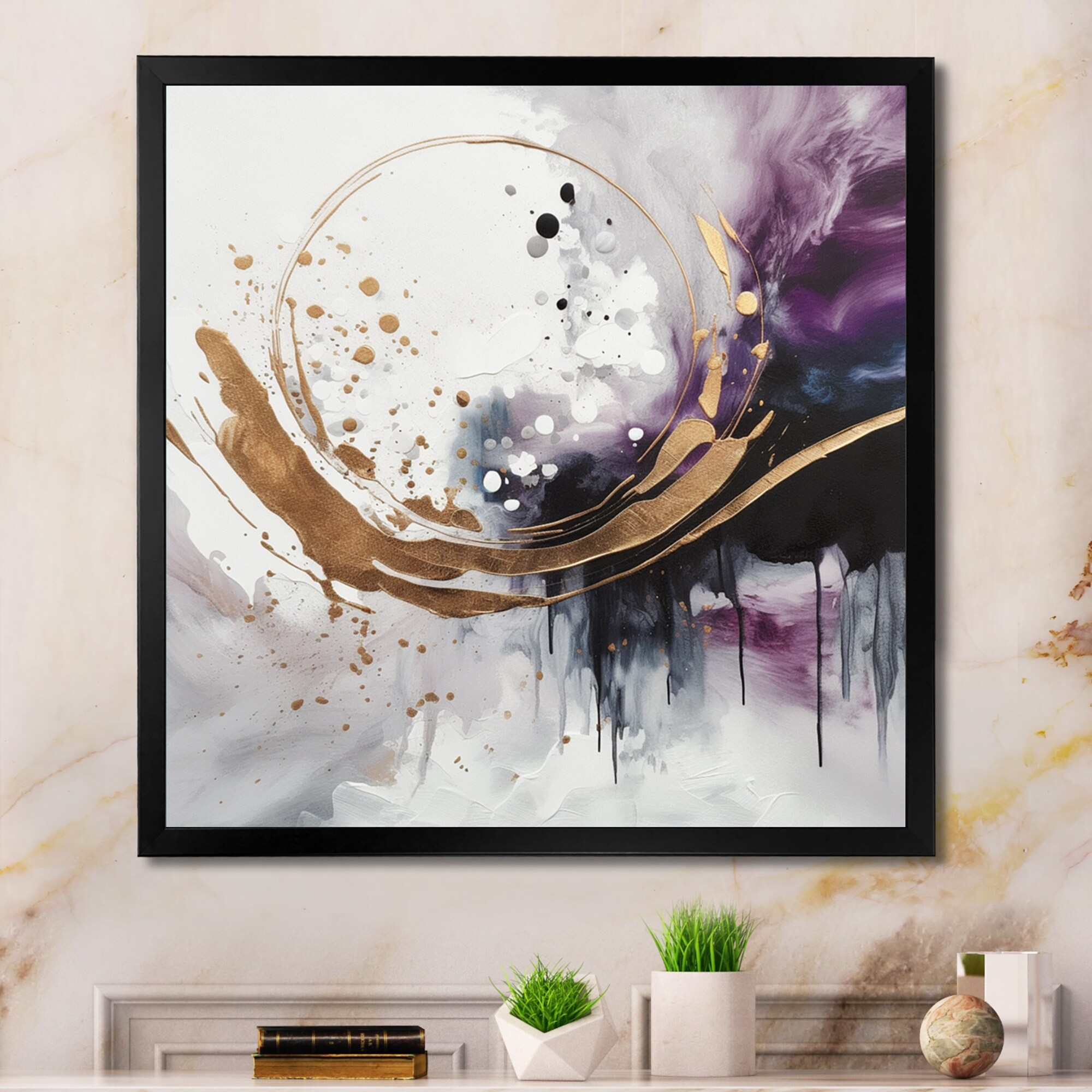 Designart "Exploring The Depths of Purple Gold Geode I" Abstract Marble Framed Wall Art for Living Room