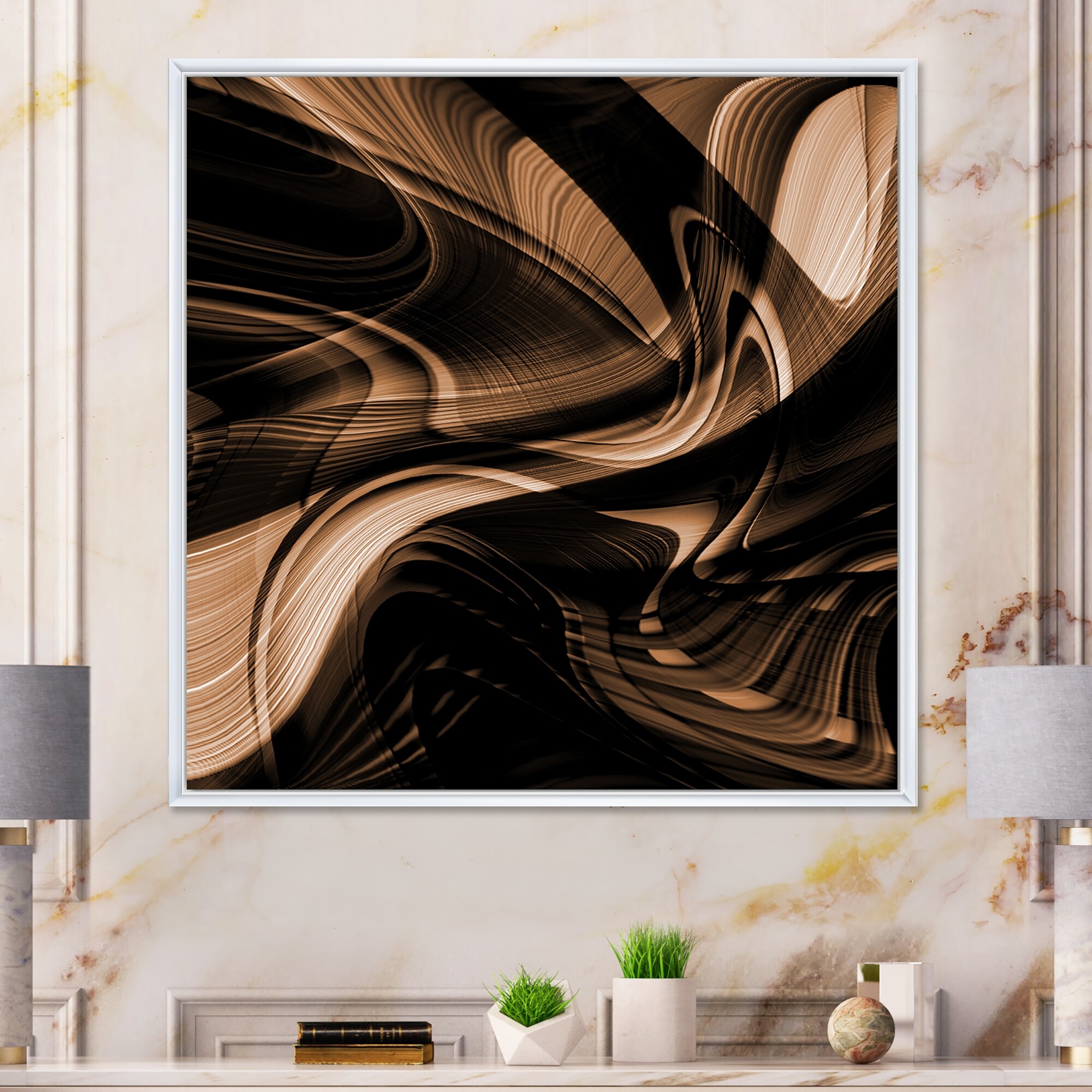 Designart "Abstract Brown Wave Art" Modern Framed Canvas Wall Art