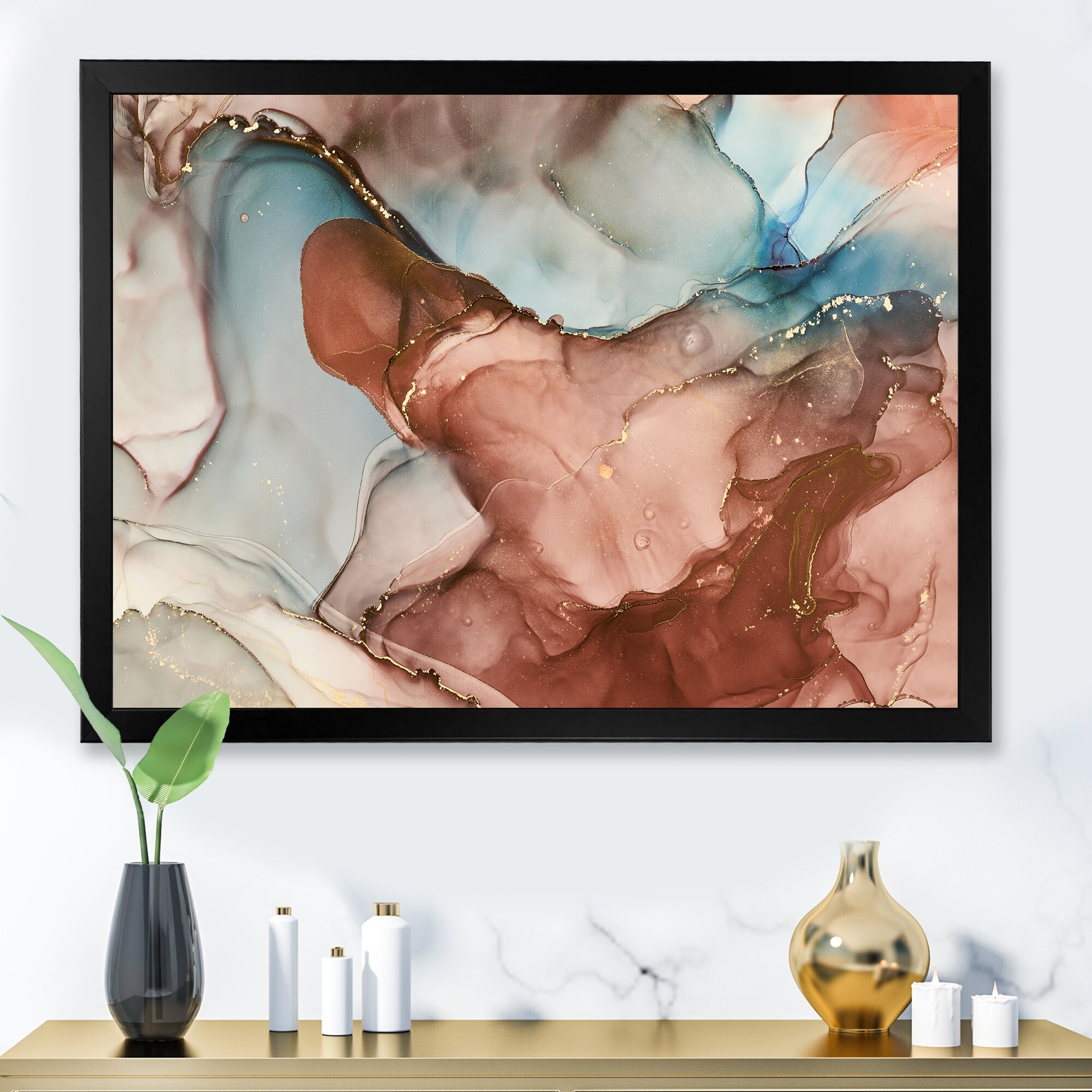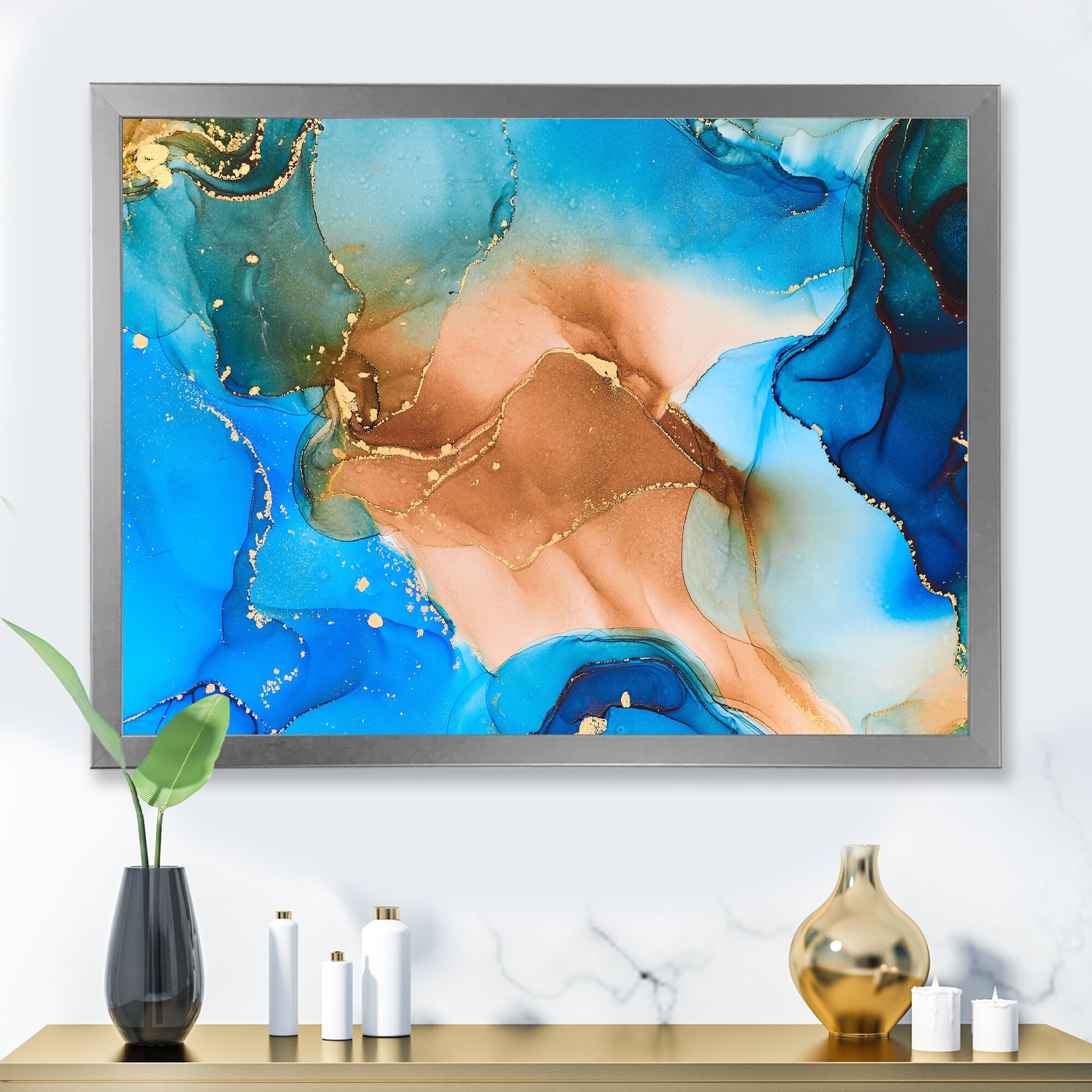 Designart "Blue And Brown Luxury Abstract Fluid Art V" Modern Framed Art Print