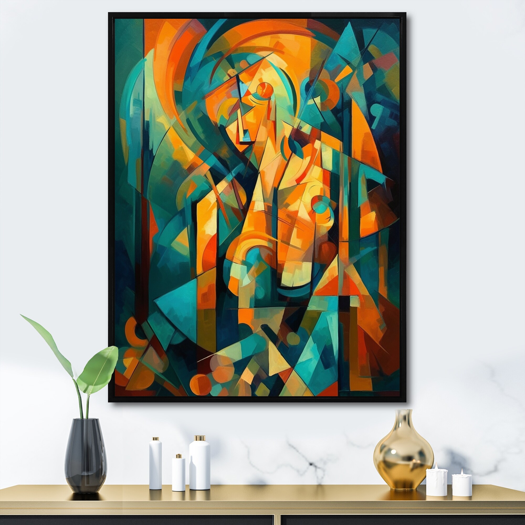 Designart "Abstracting The Cubist Form V" Abstract Cubism Framed Canvas Art Print