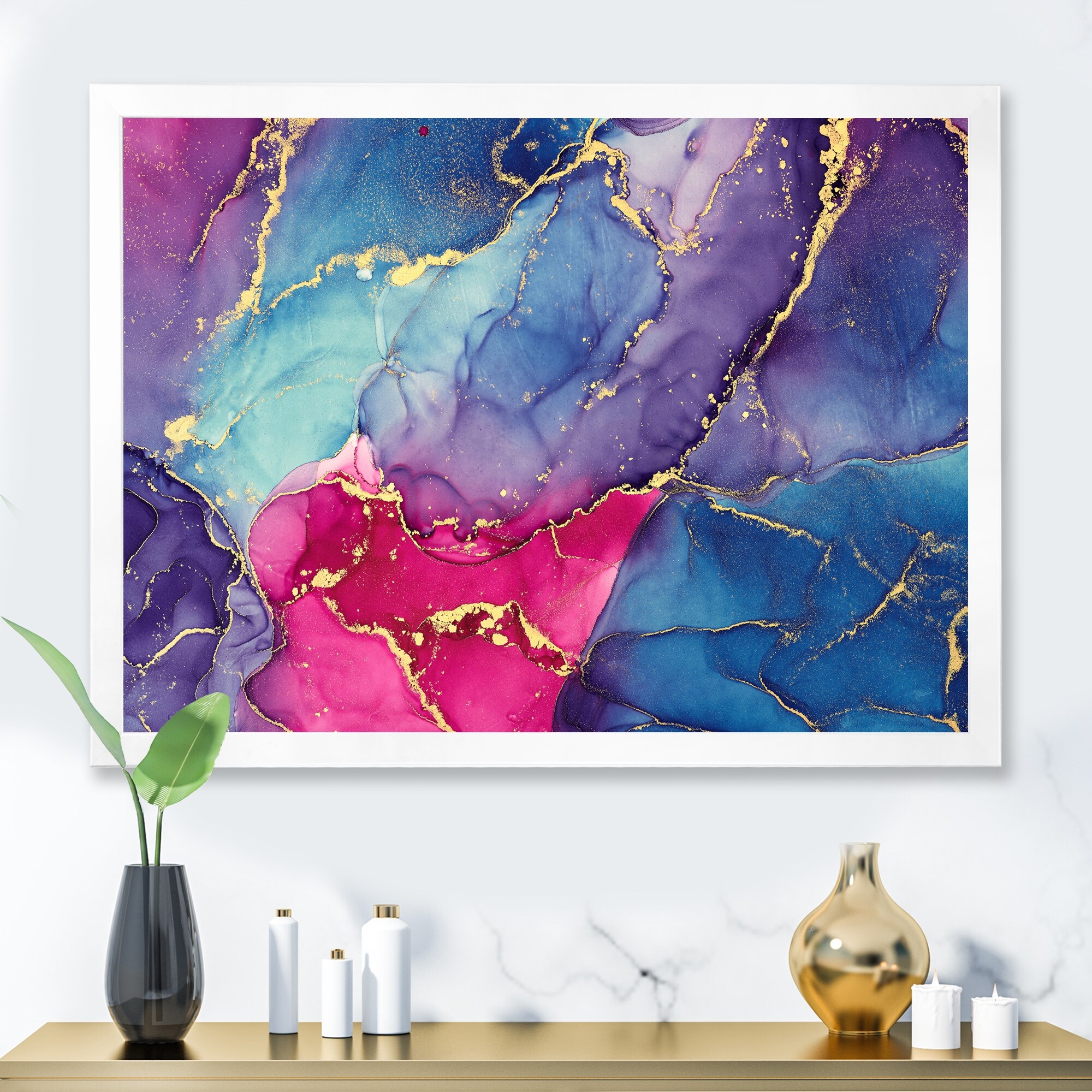Designart "Blue And Pink Luxury Abstract Fluid Art" Modern Framed Art Print