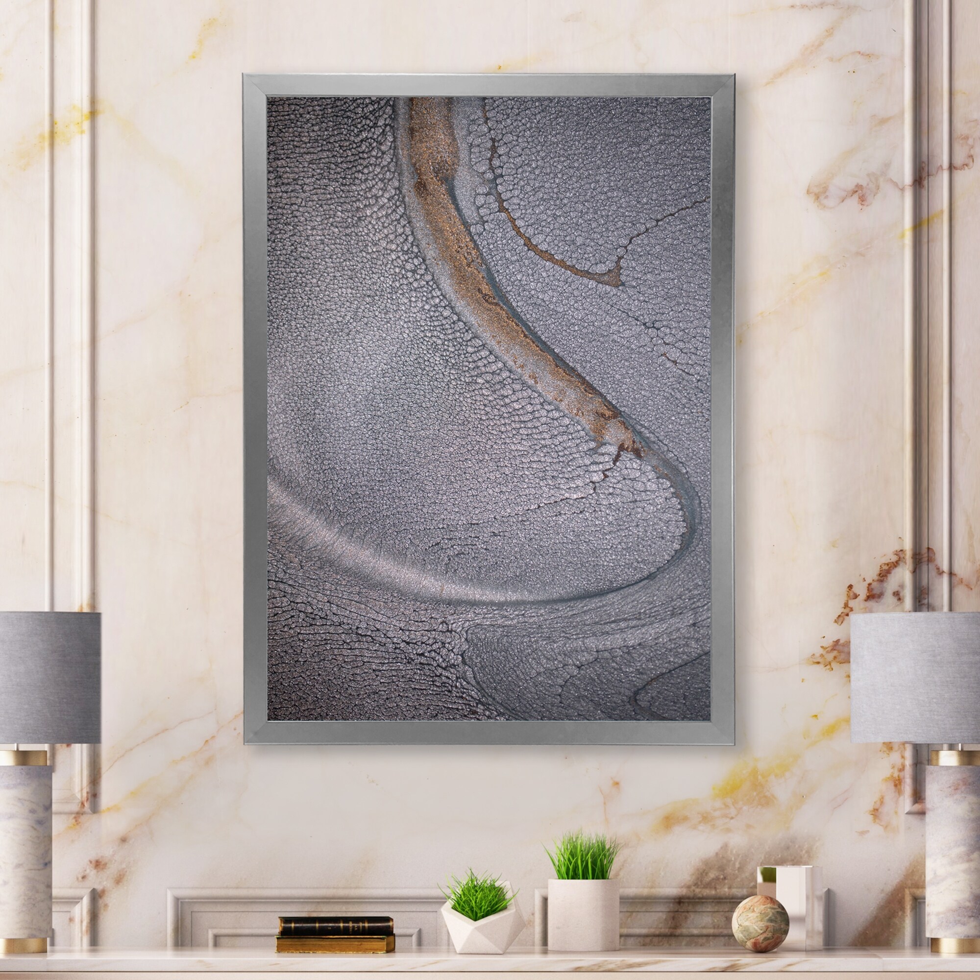 Designart "Metallic Stripes And Circles Iv" Abstract Marble Framed Wall Art for Living Room