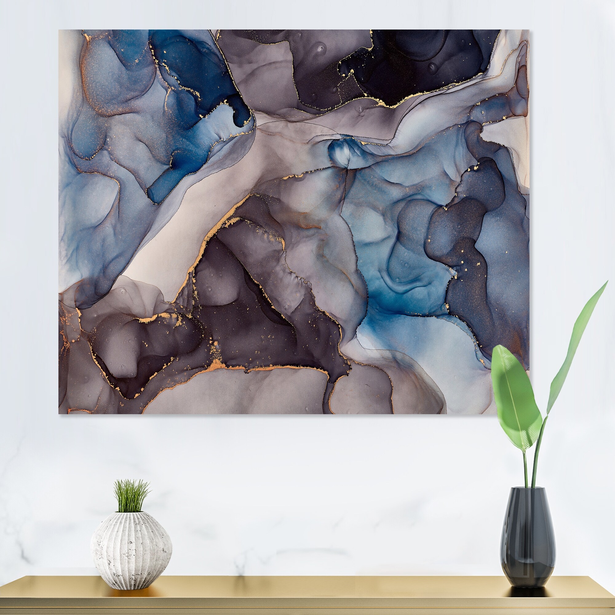 Designart "Grey And Blue Luxury Abstract Fluid Art" Modern Canvas Wall Art Print