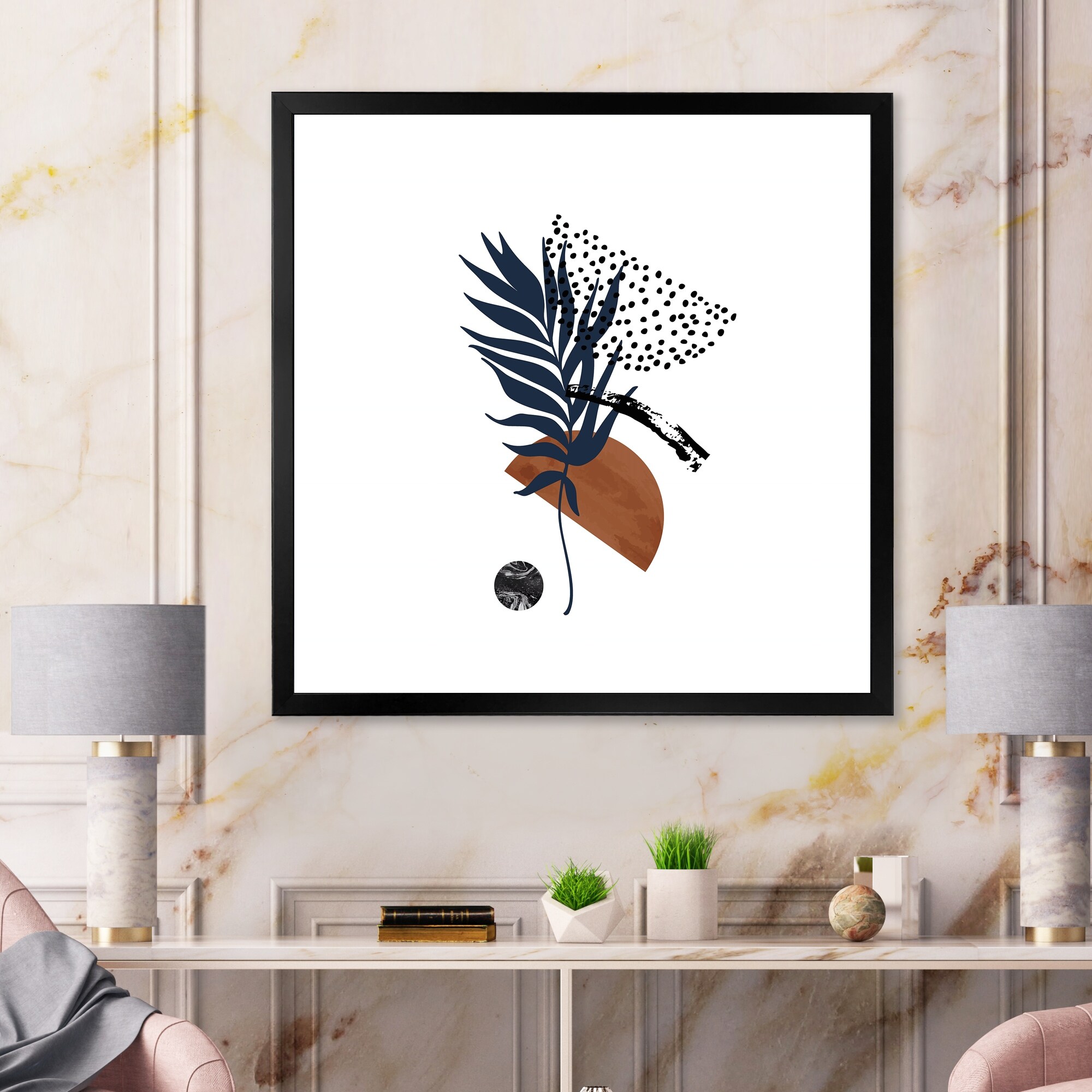 Designart "Abstract Palm Leaf Abstract Half Moons I" Tropical Framed Art Print