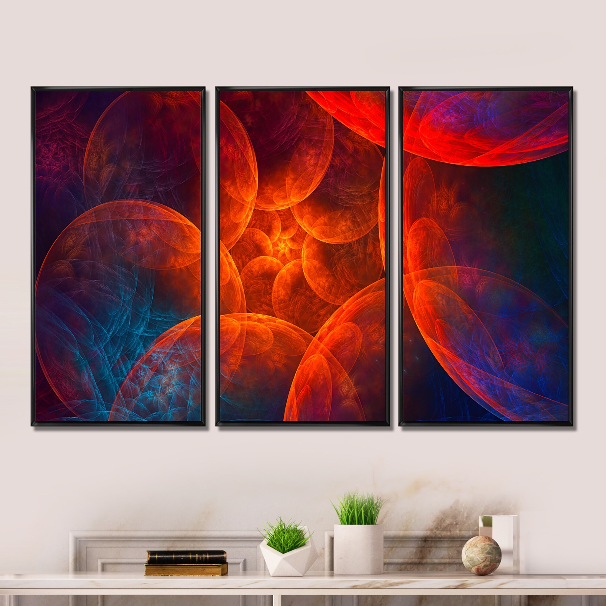 Designart "Biblical Sky with Red Clouds" Abstract Framed Canvas Wall Art Set of 3 - 4 Colors of Frames