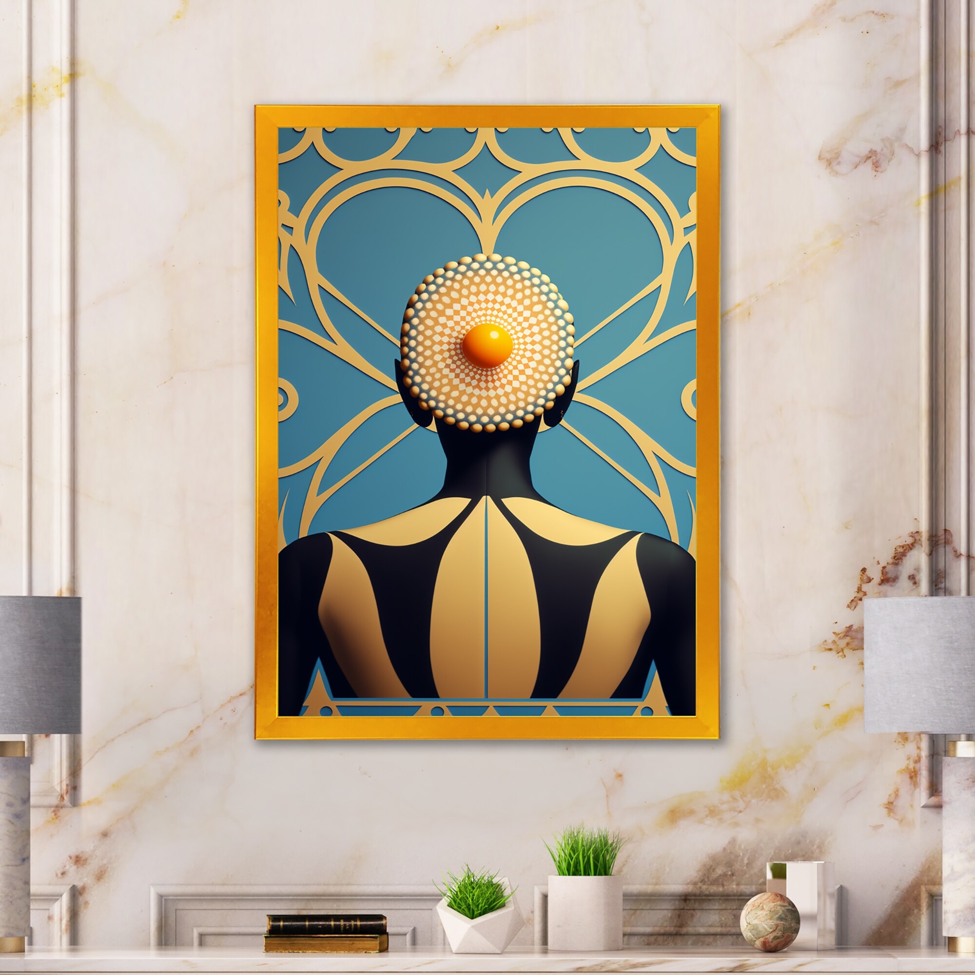 Designart "Golden Consciousness Woman I" Modern Abstract Framed Art Print