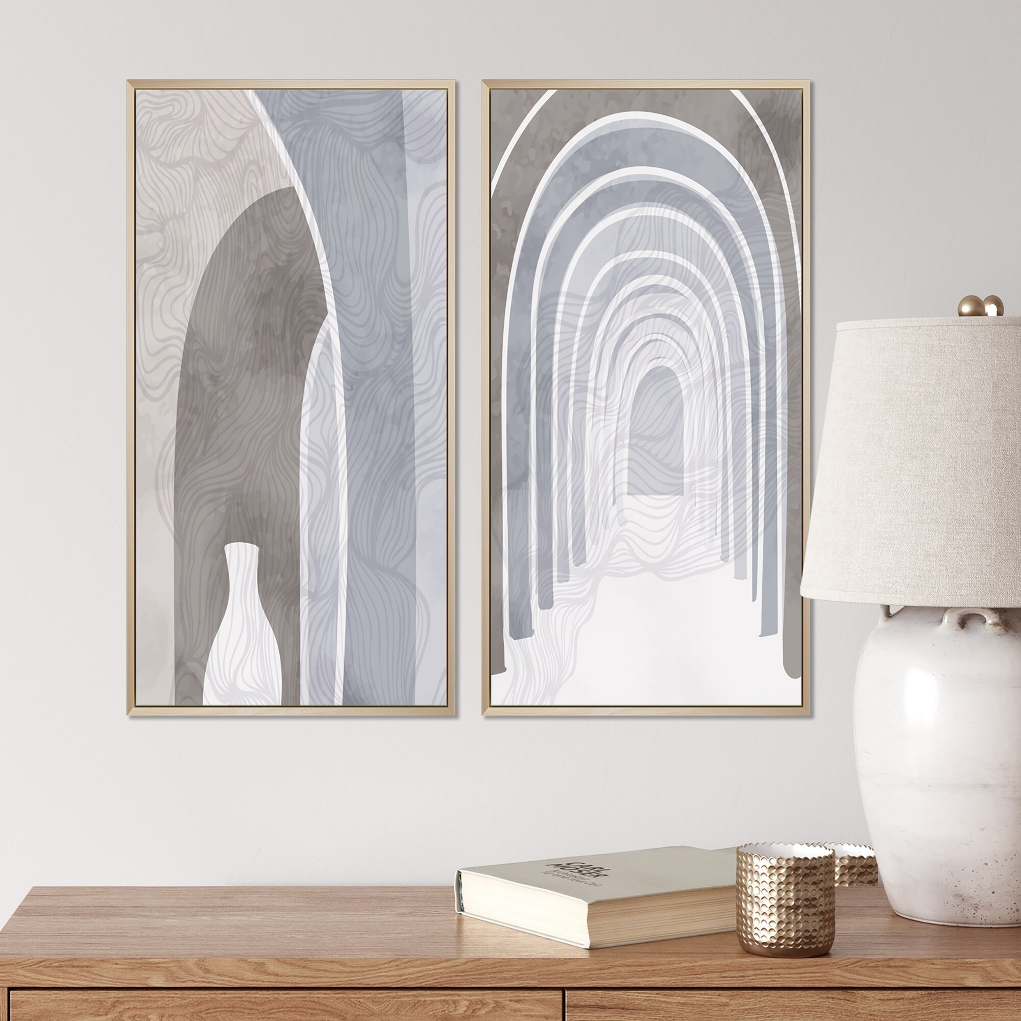 Designart "Abstract Neutral V" Abstract Shapes Framed Canvas Art Print
