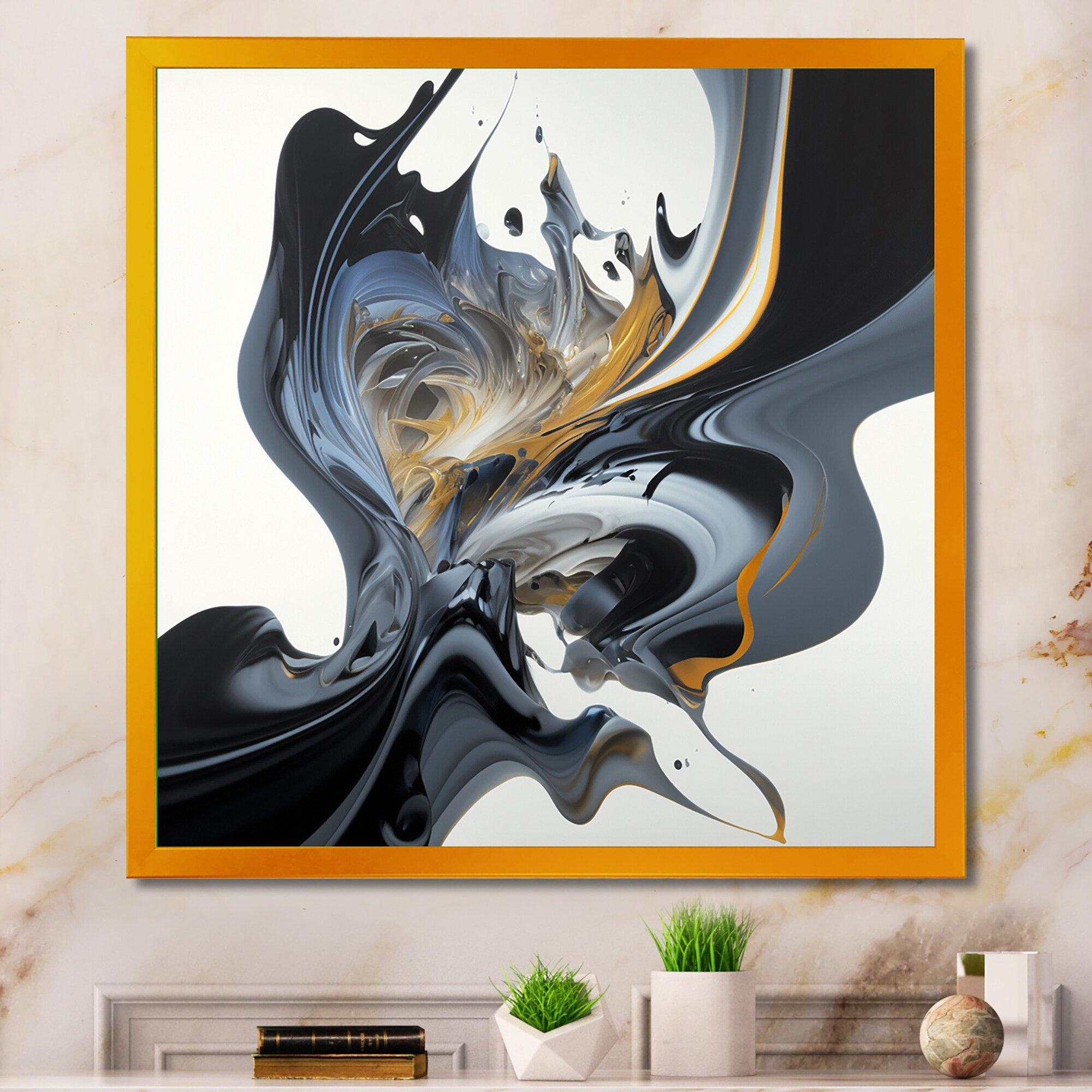 Designart "Grey Luxury Abstract Fluid Art" Modern Framed Canvas Wall Art Print