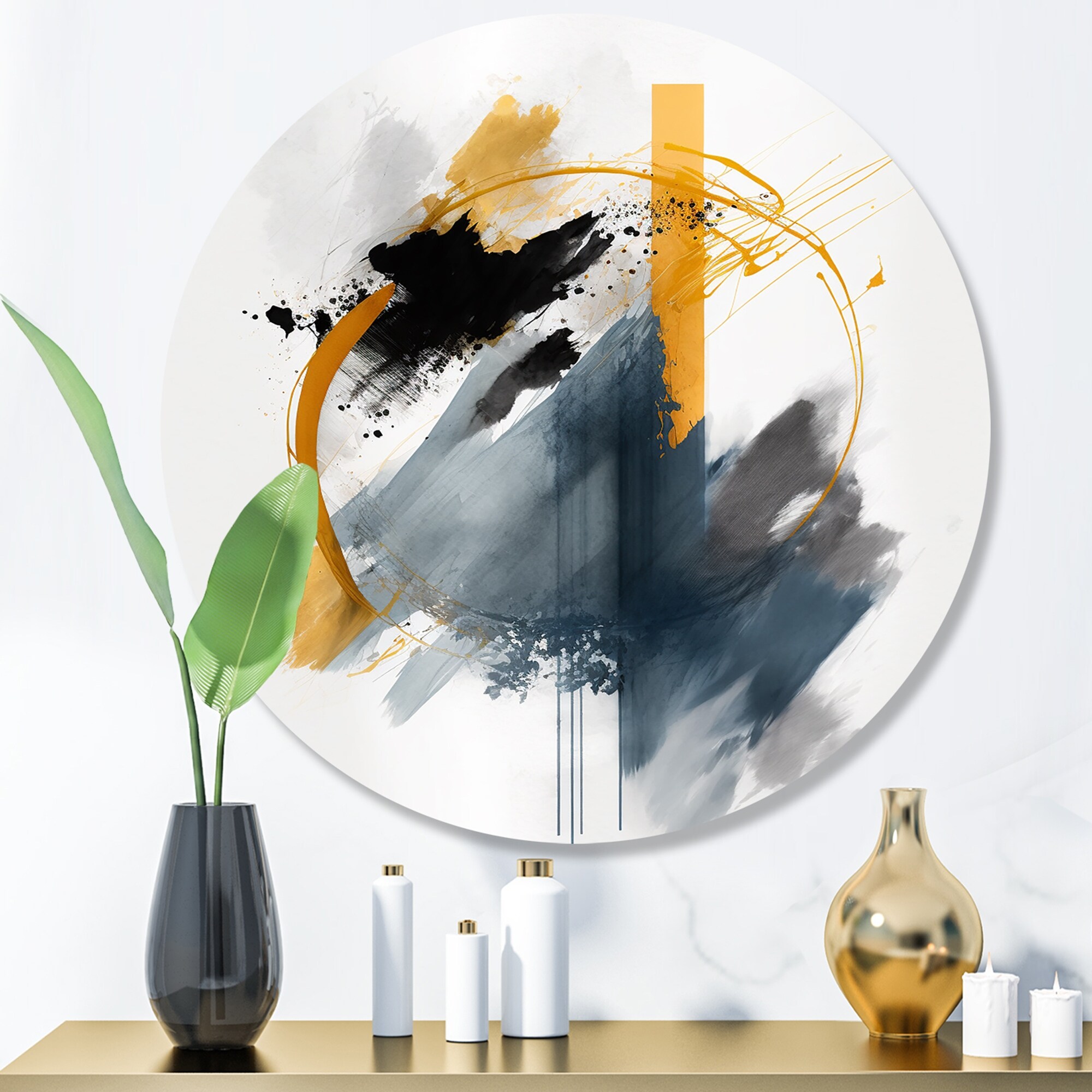 Designart "Abstract Shapes And Strokes" Abstract Metal Round Wall Art