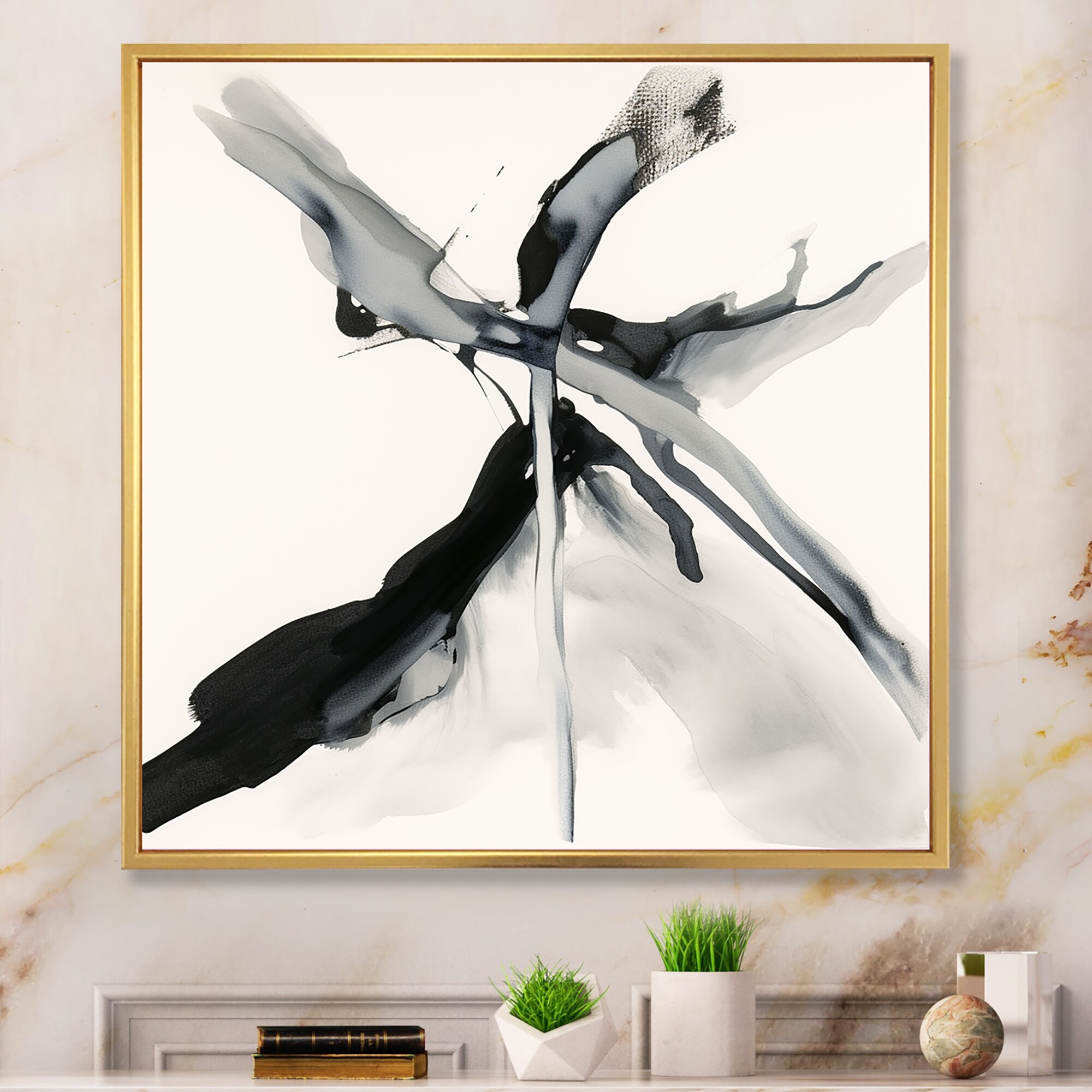 Abstract Branches by Chamira Young Framed Canvas Wall Art Print - Sylvie Greywash
